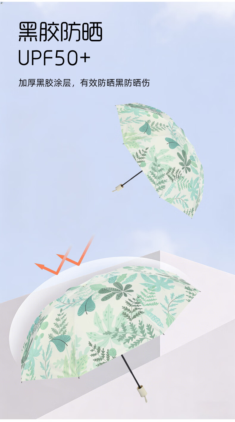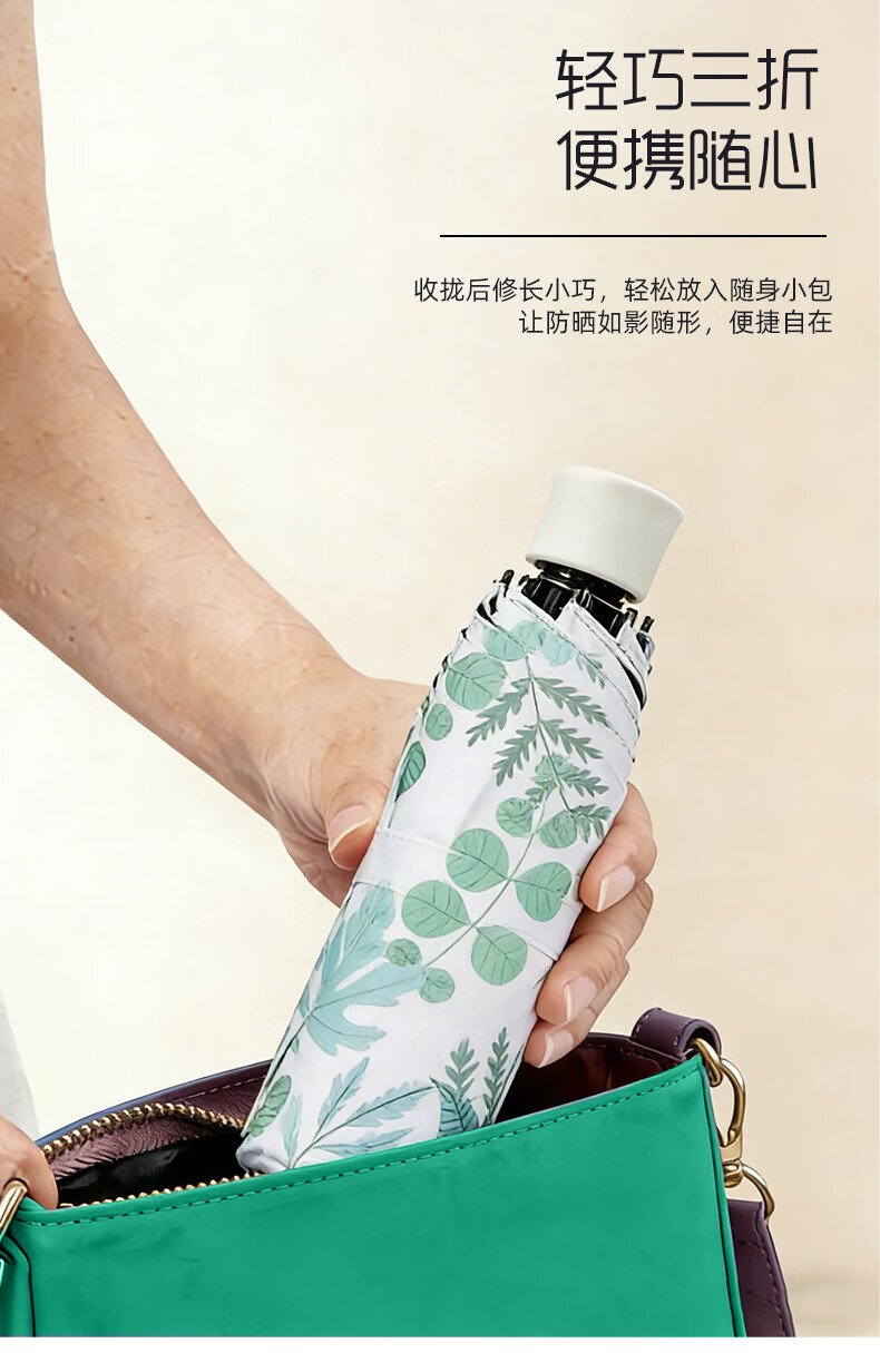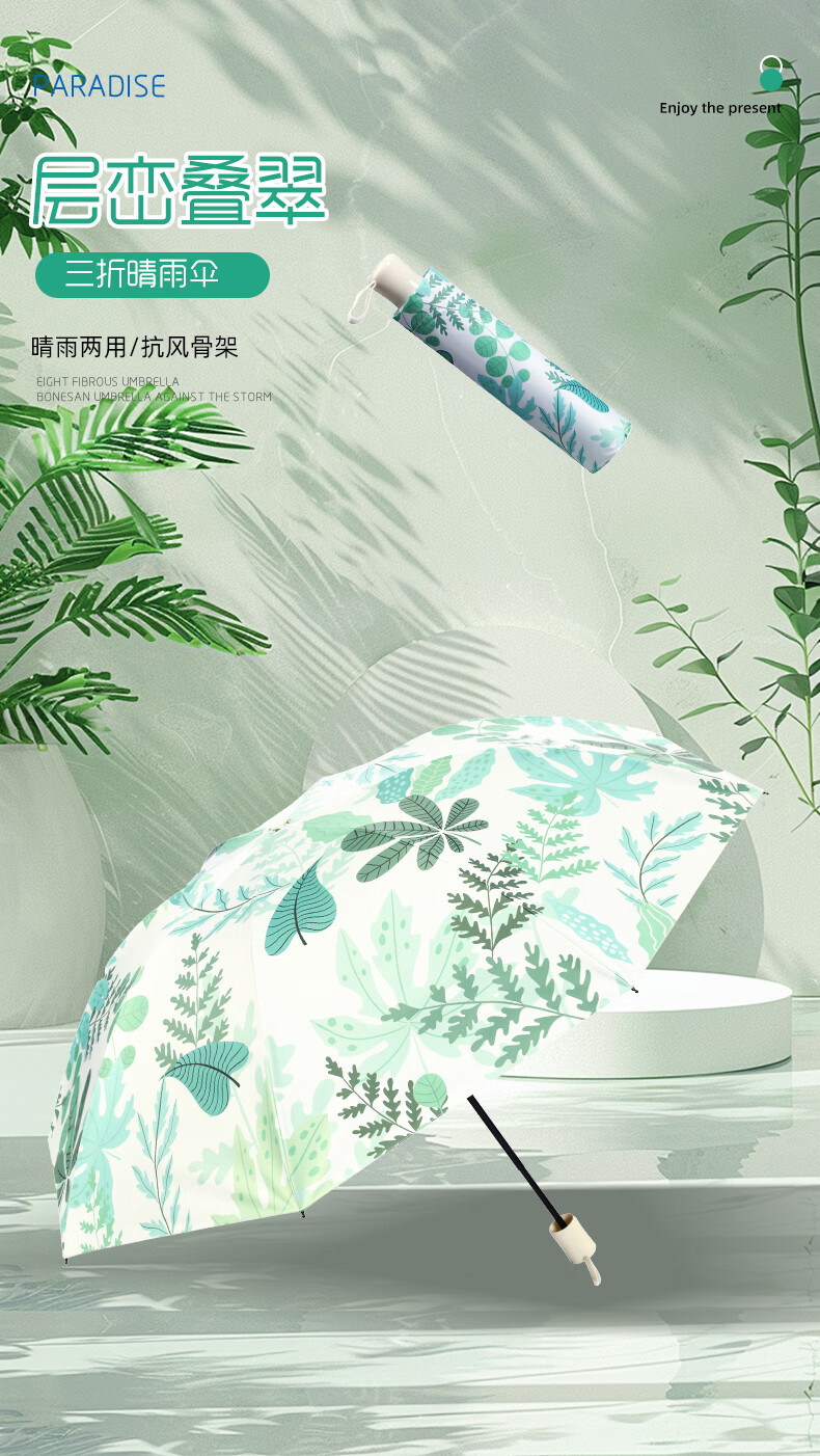 天堂 三折晴雨太阳伞 57cm*8K 叠翠 36307E