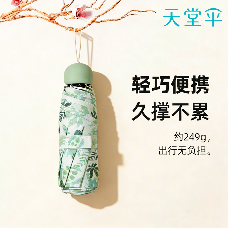 天堂 五折晴雨太阳伞 54cm*6K 叠翠 56315E