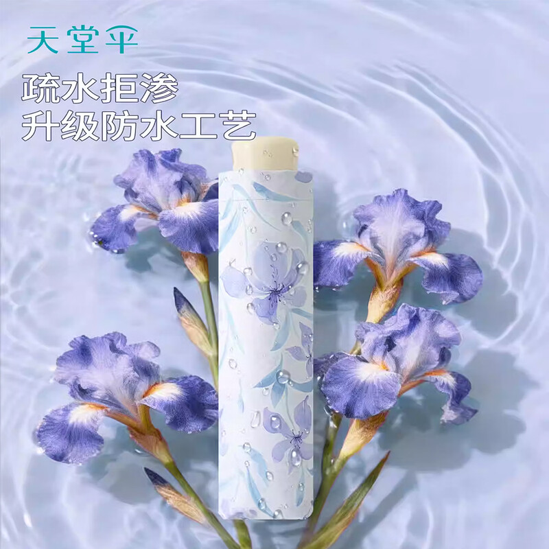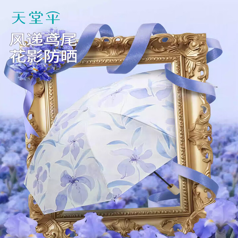 天堂 三折晴雨太阳伞 57cm*8K 花语清晨 36303E