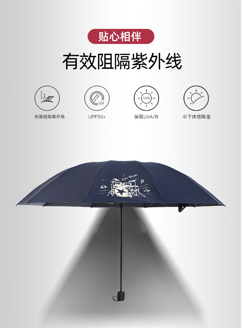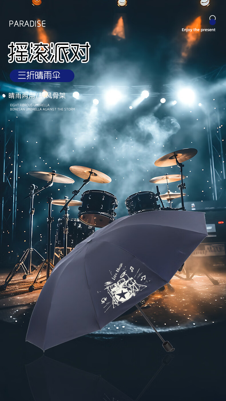 商品名称:天堂 三折晴雨伞 64cm*10K 摇滚派对 36313E