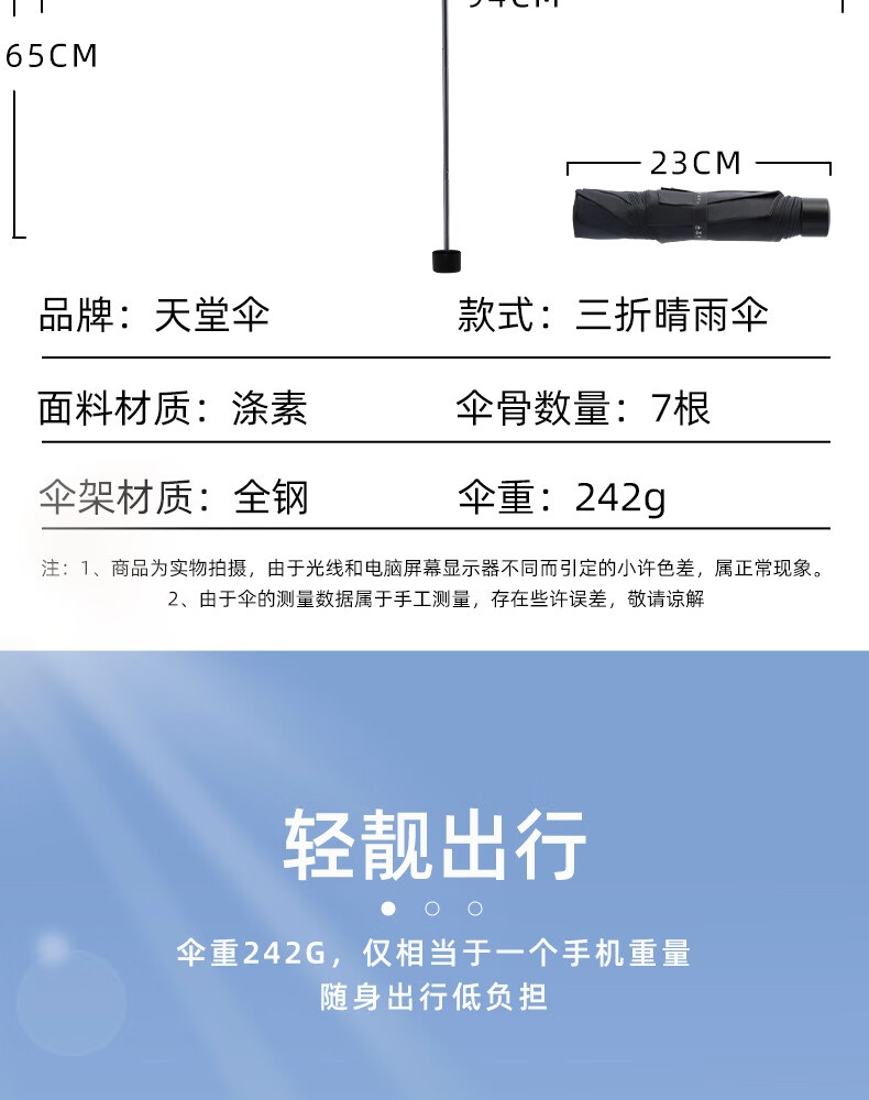 商品名称:天堂 三折晴雨伞 57CM*7K 36150EZ