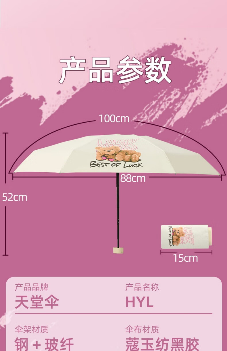 商品名称:天堂 五折晴雨伞好运来 50CM*6K 51141E