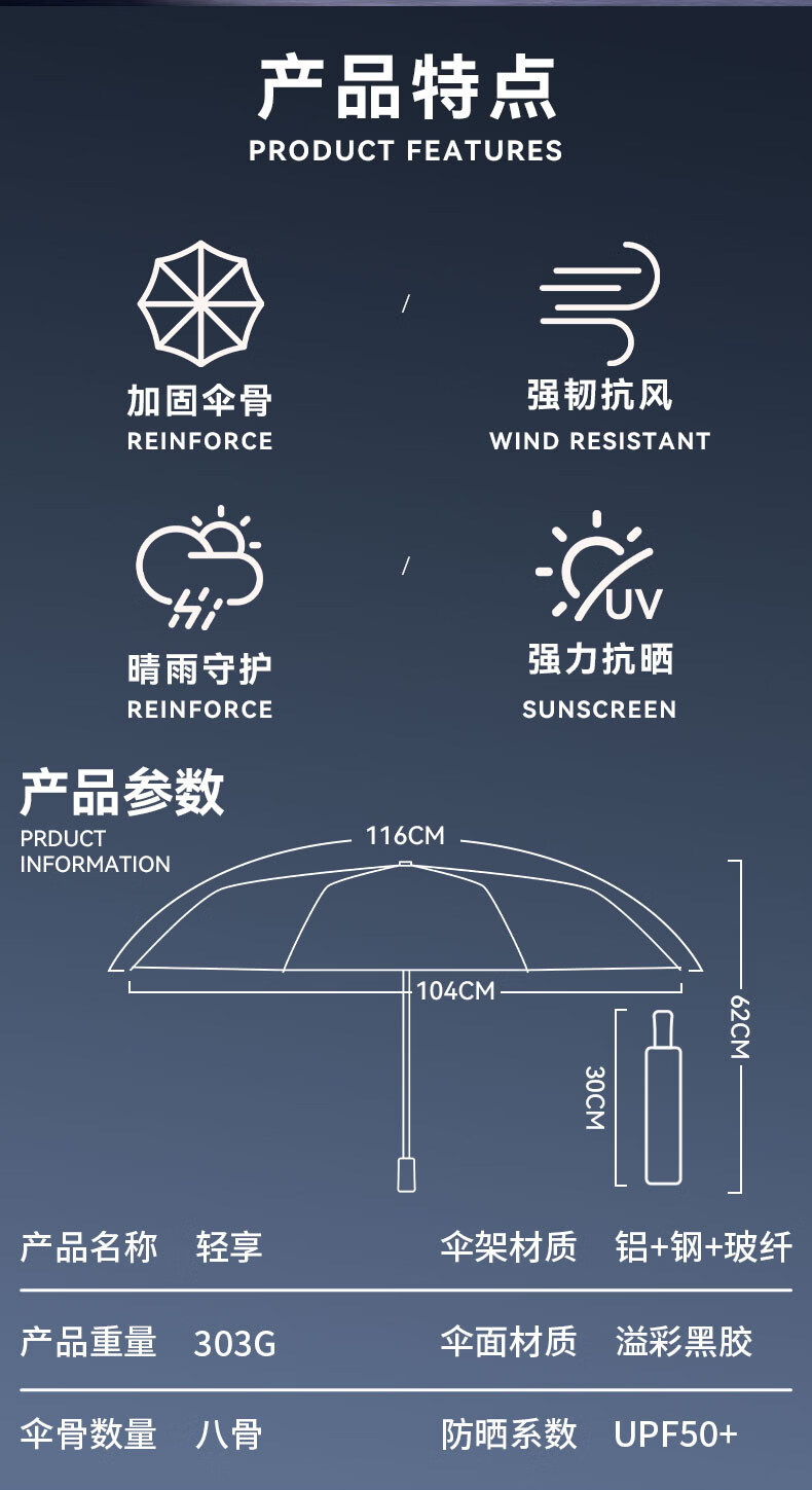 商品名称:天堂 三折晴雨伞轻享 58CM*8K 37521E