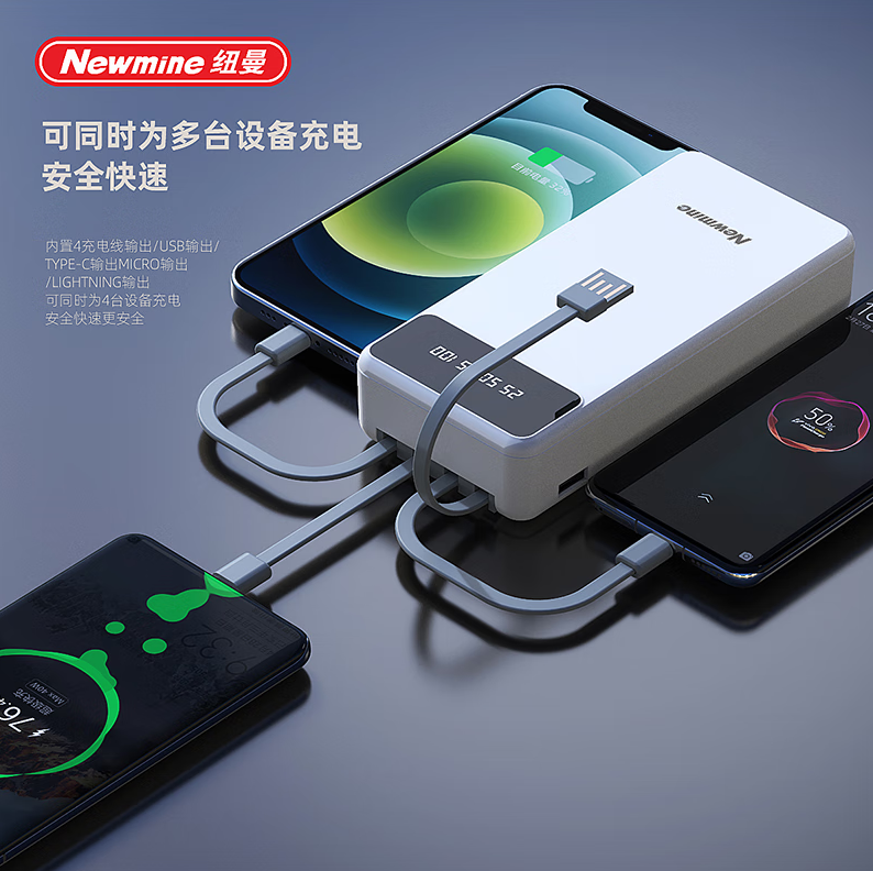 商品名称:纽曼 20000毫安自带四线移动电源 M238