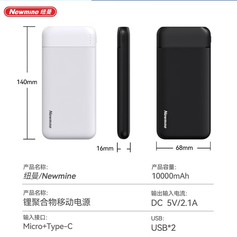 商品名称:纽曼 10000毫安超薄移动电源 F133