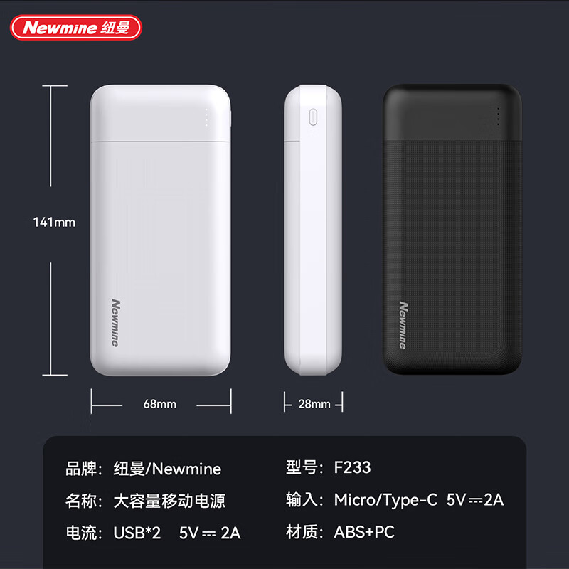 商品名称:纽曼 20000毫安超薄移动电源 F233
