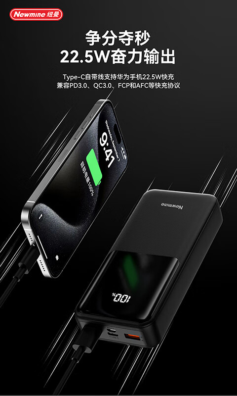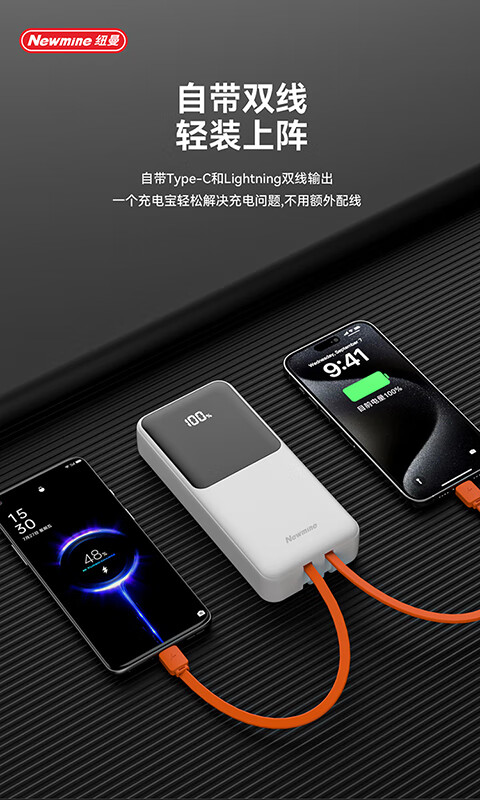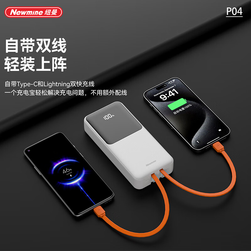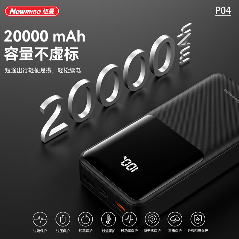 纽曼 20000毫安自带线快充数显移动电源 P04