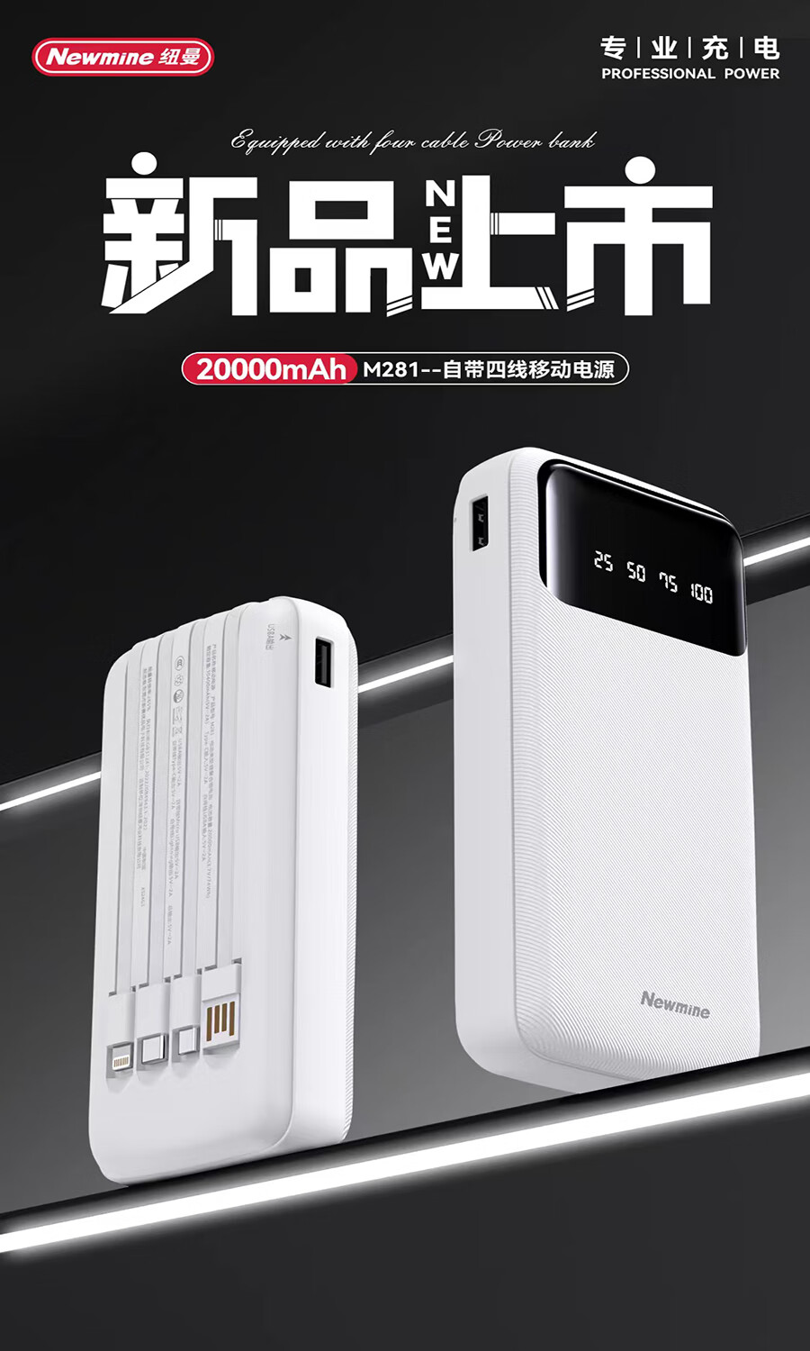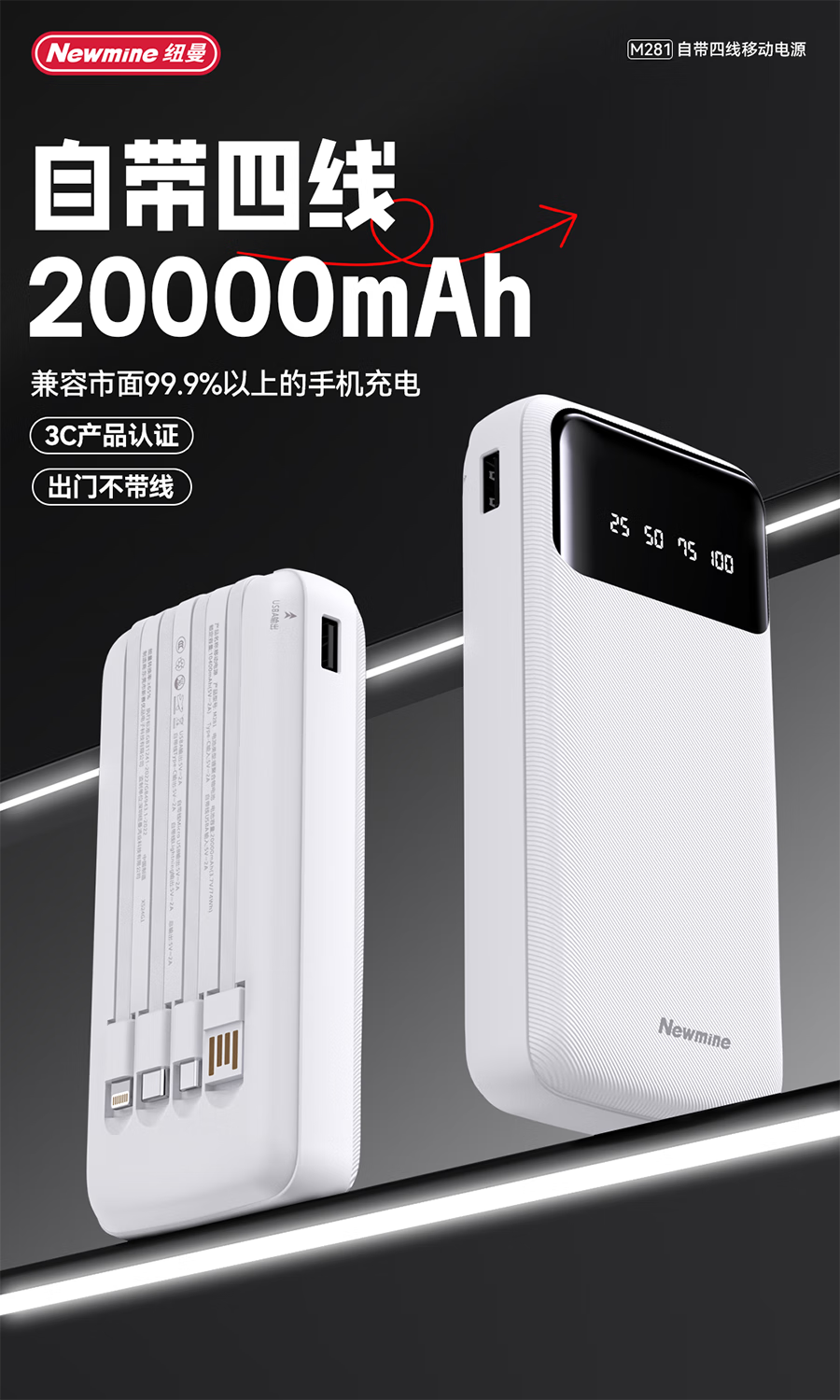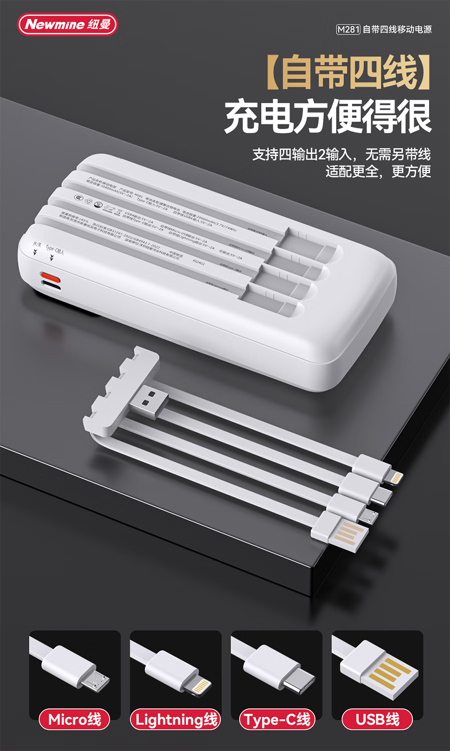 纽曼 20000毫安自带四线移动电源