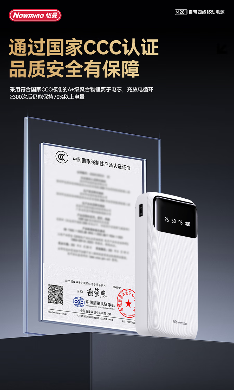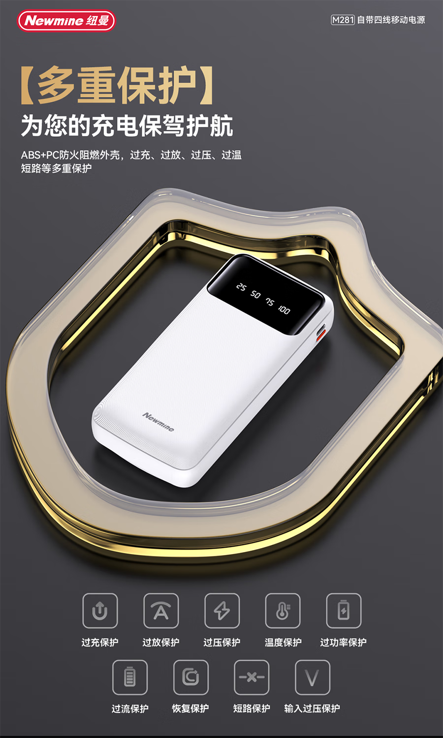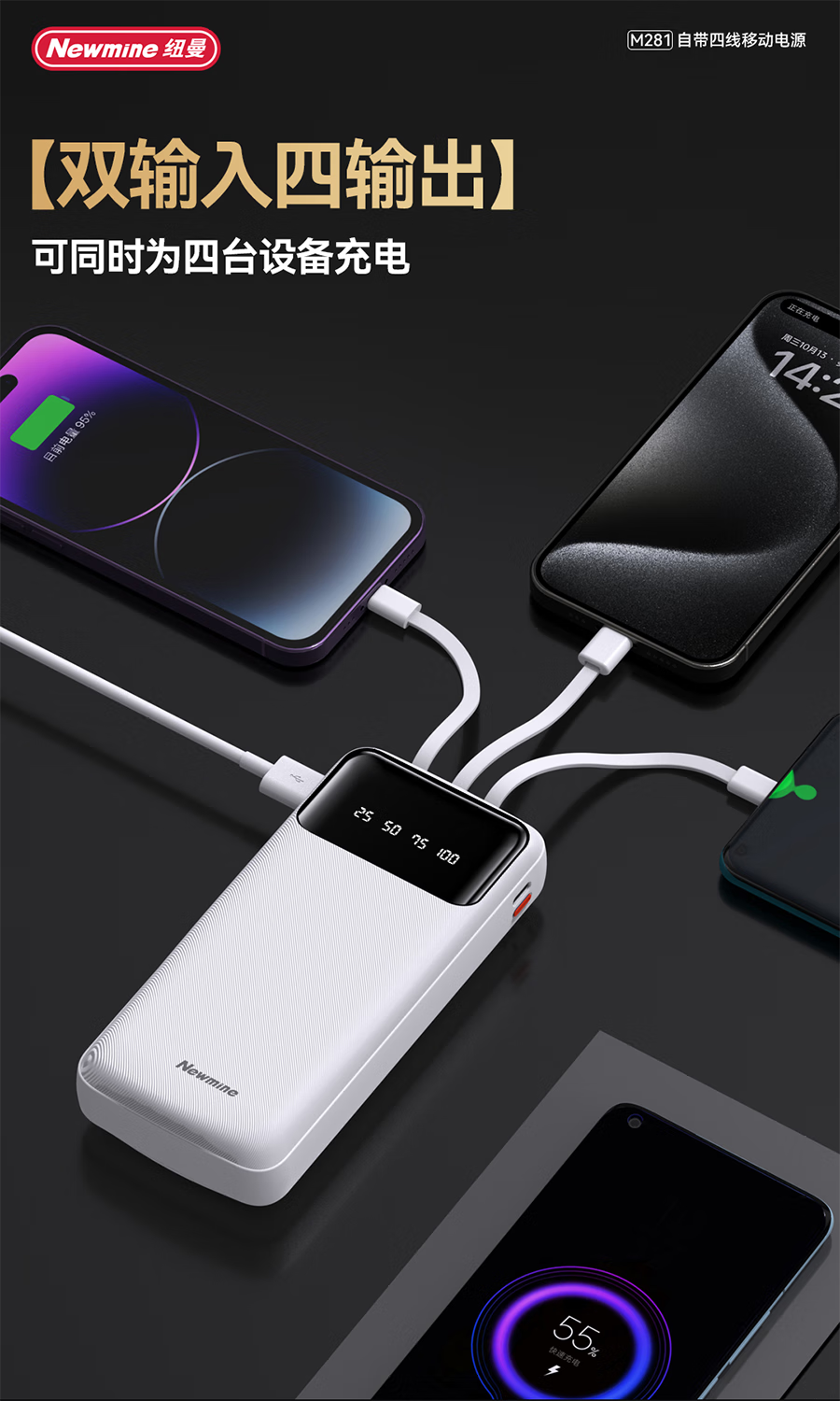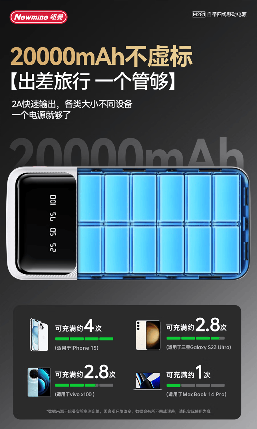 纽曼 20000毫安自带四线移动电源