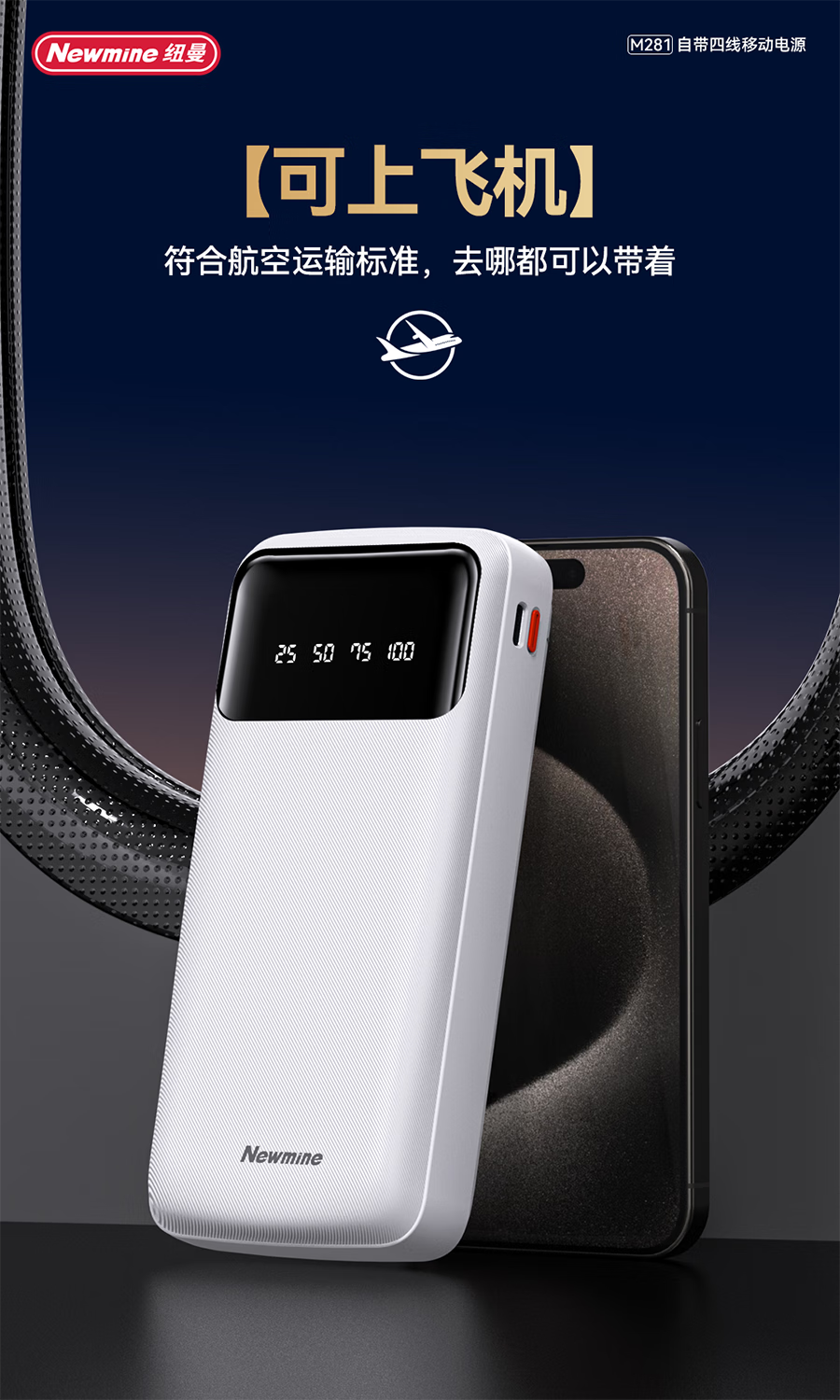 可上飞机 (27000mAh以下) 电量显示 自带线
