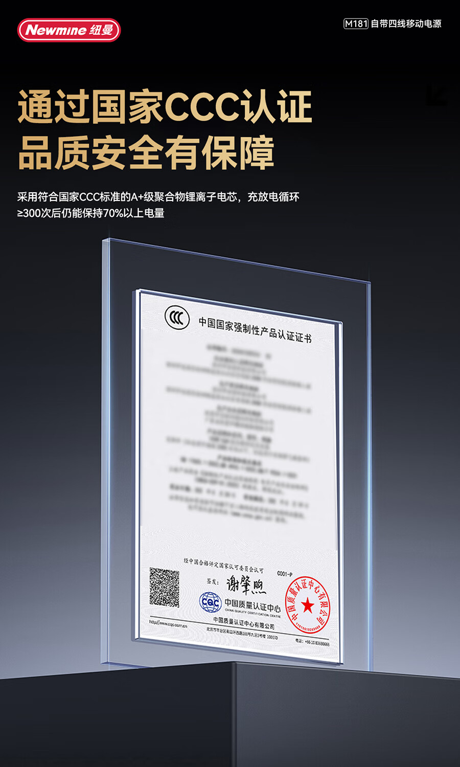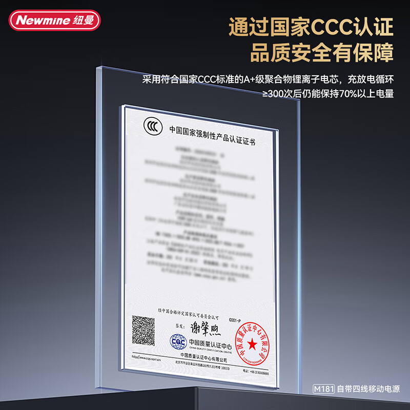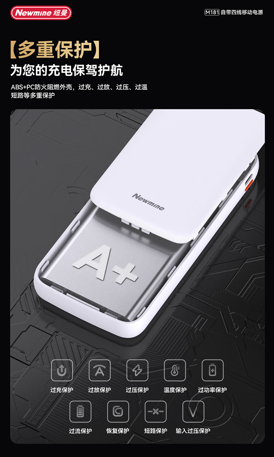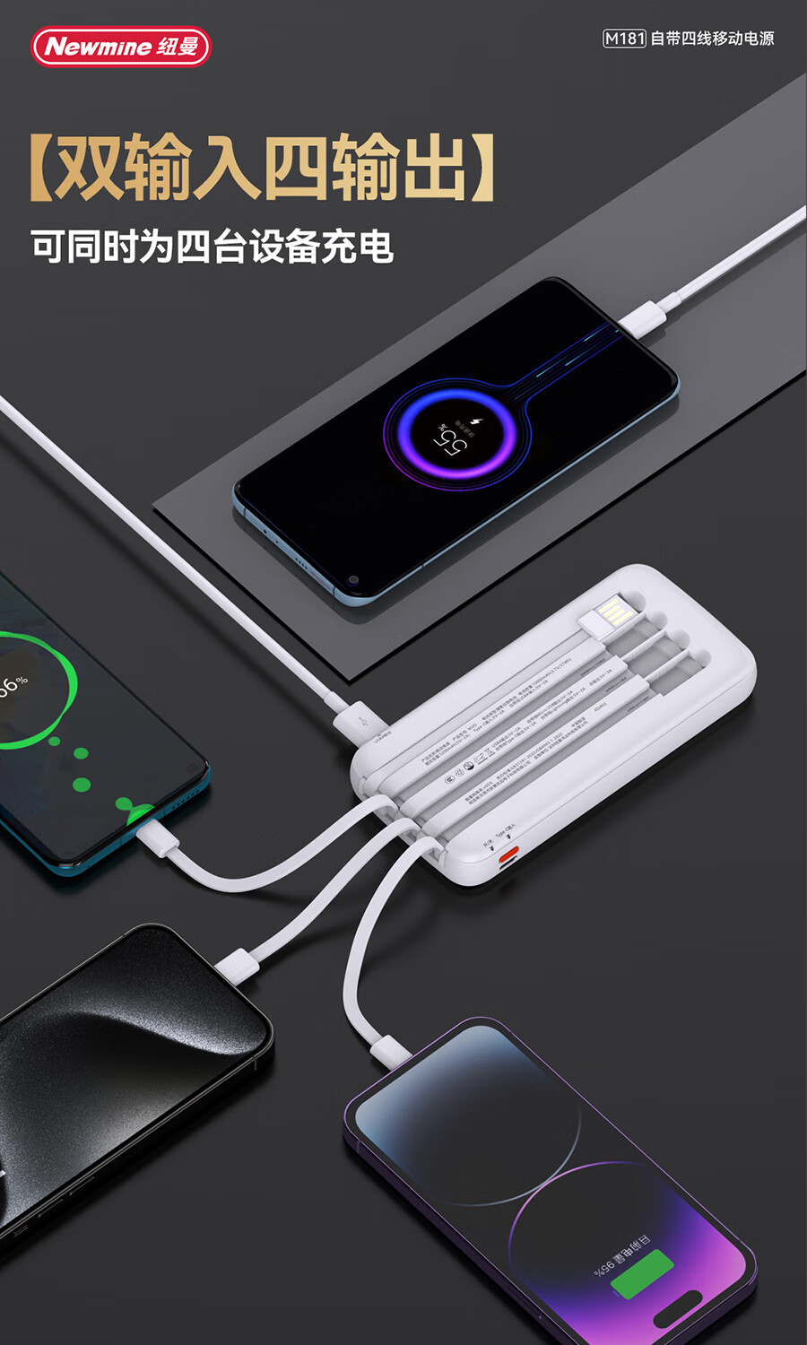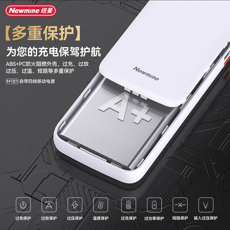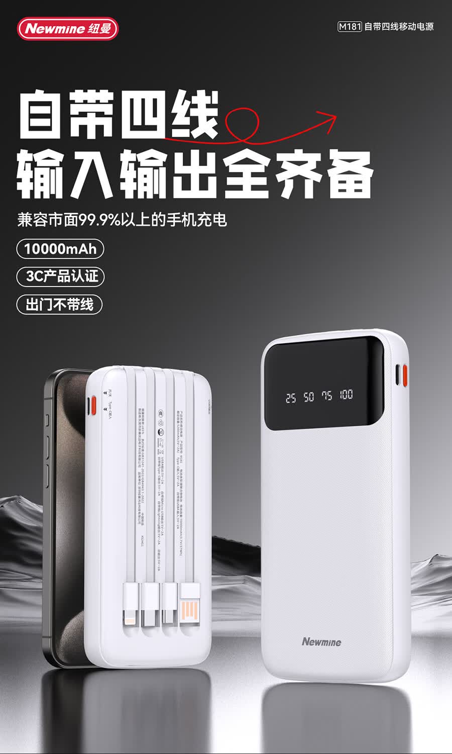 商品名称:纽曼 10000毫安自带四线移动电源 M181