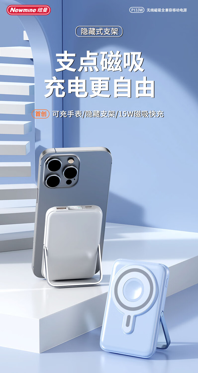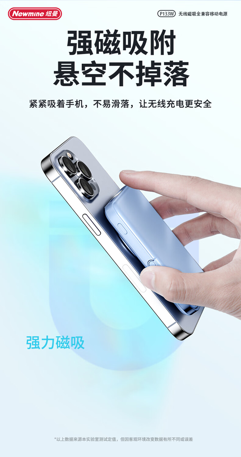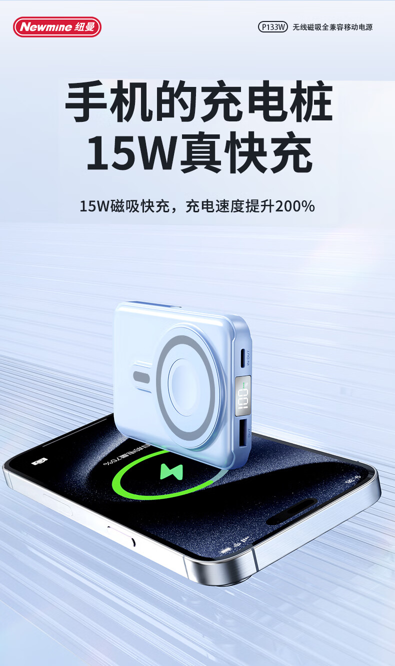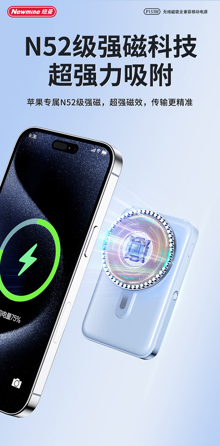 纽曼 10000毫安无线磁吸快充移动电源 P133W