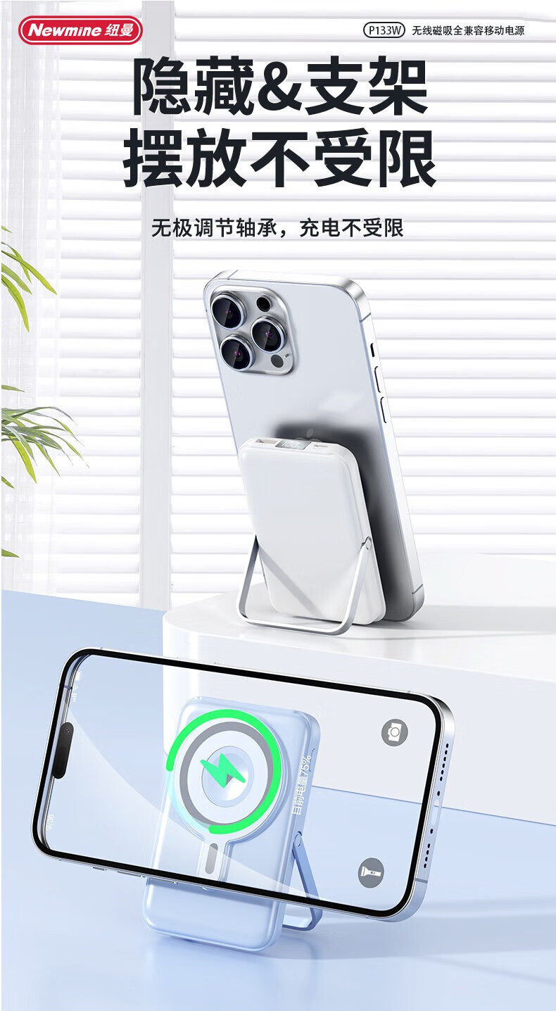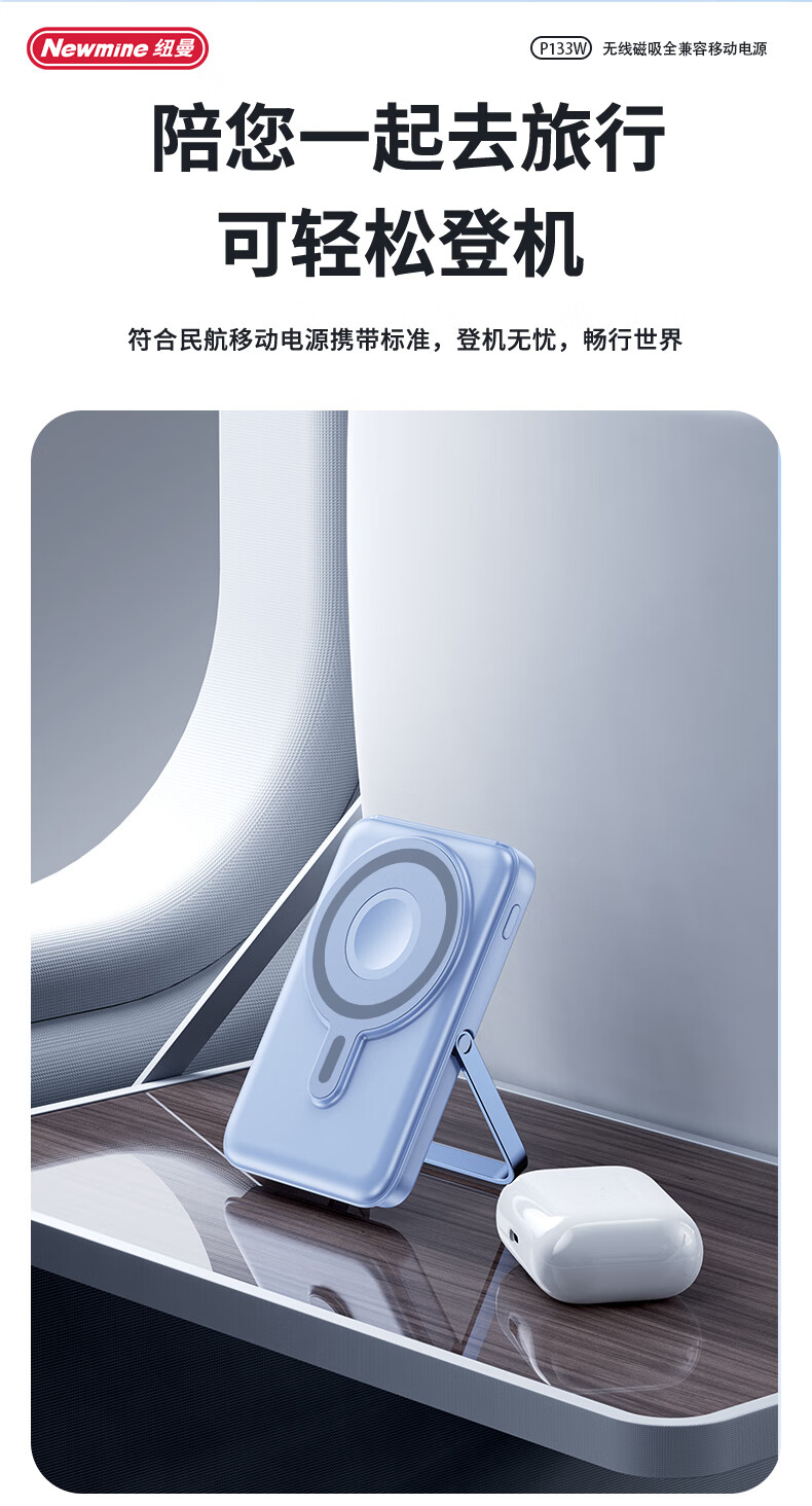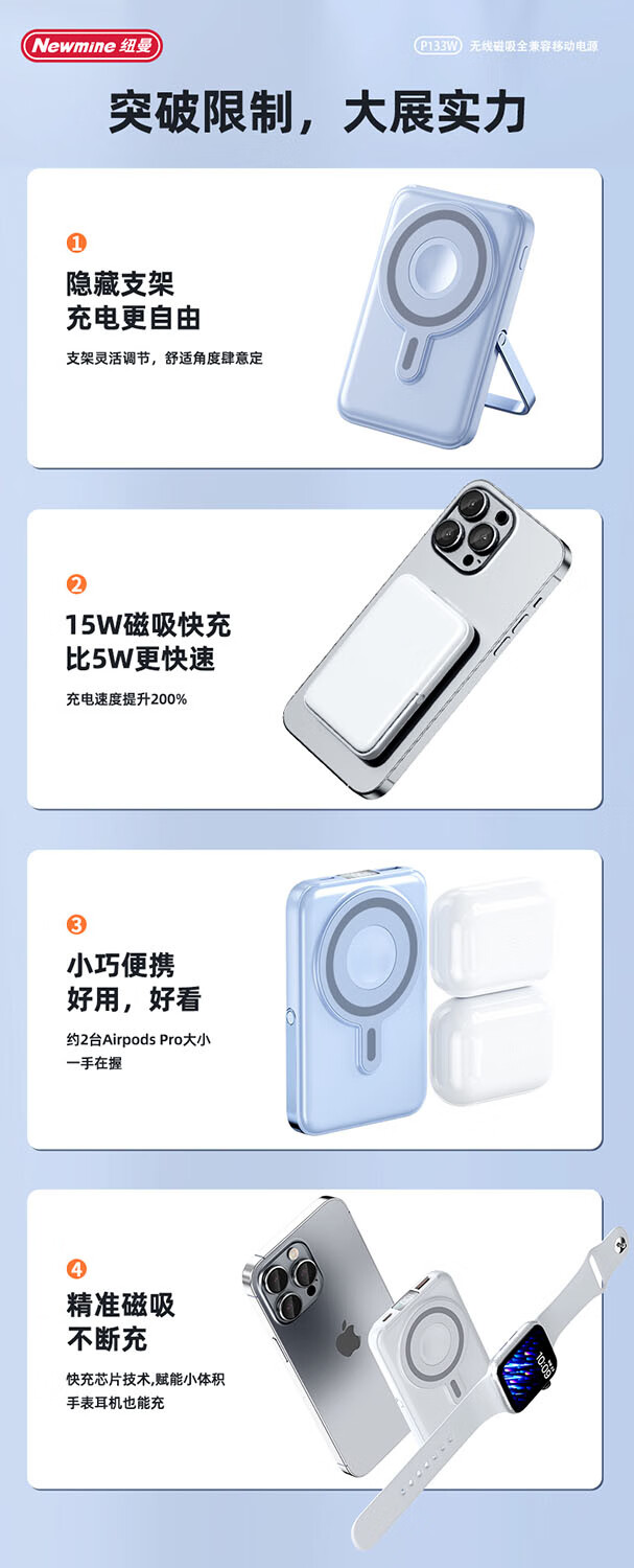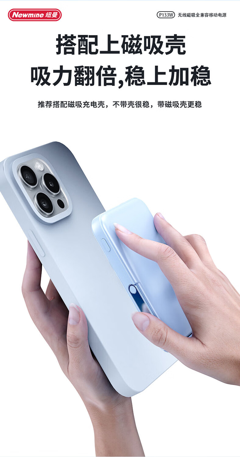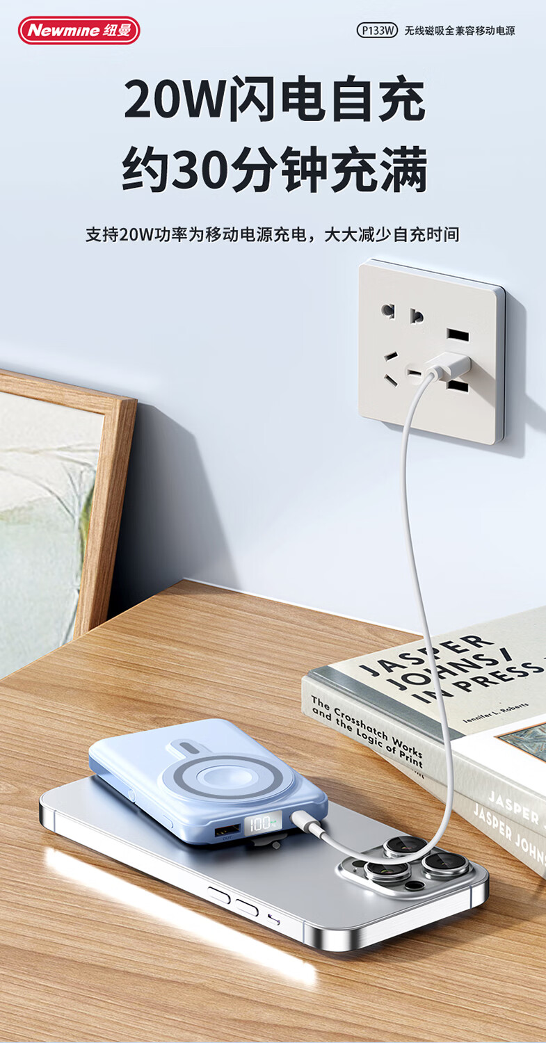 纽曼 10000毫安无线磁吸快充移动电源 P133W