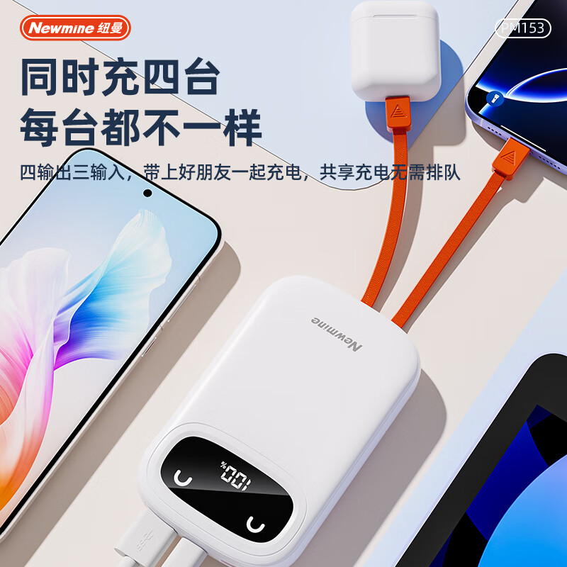 纽曼 10000毫安自带三线快充数显移动电源 PM153