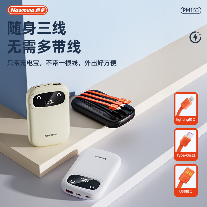 商品名称:纽曼 10000毫安自带三线快充数显移动电源 PM153