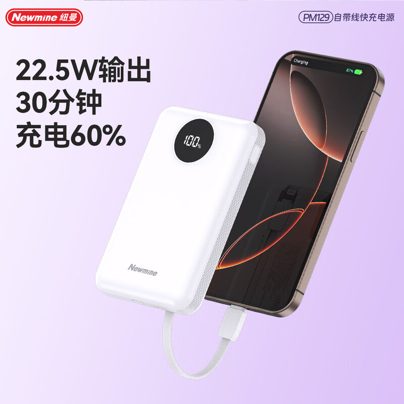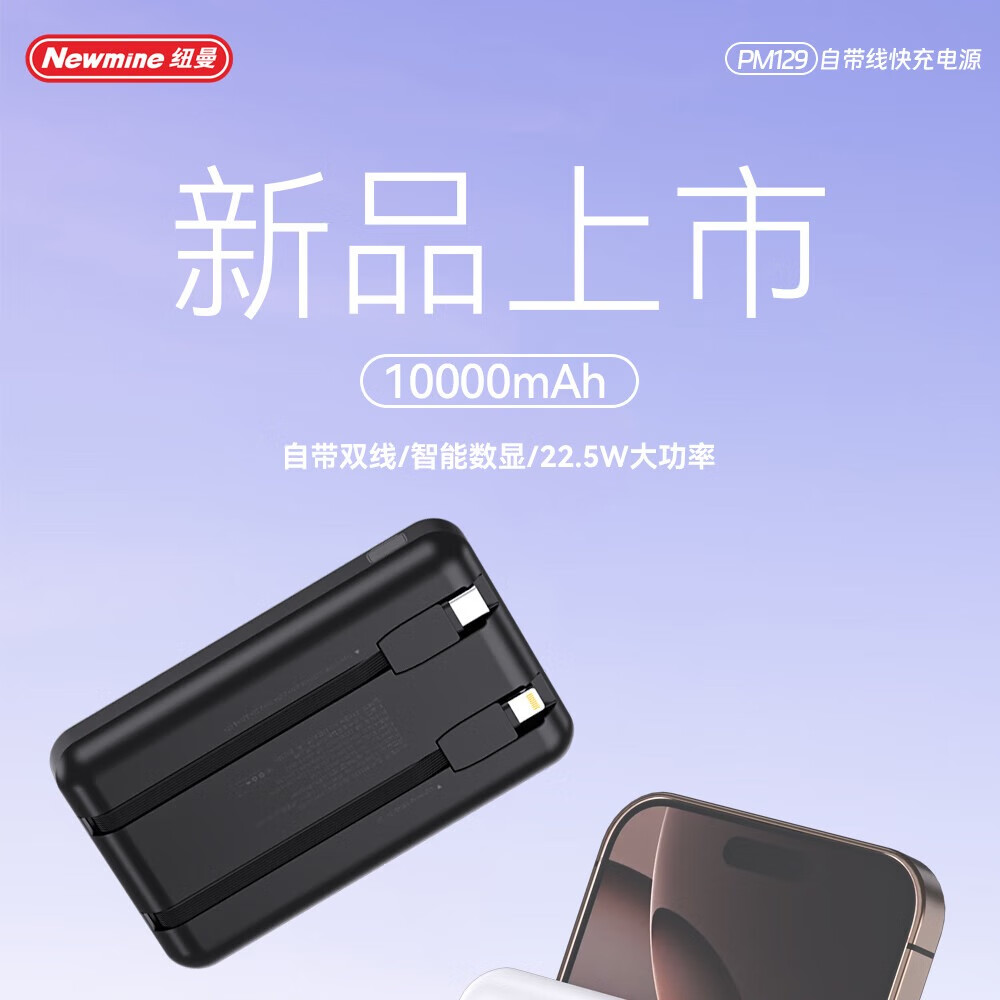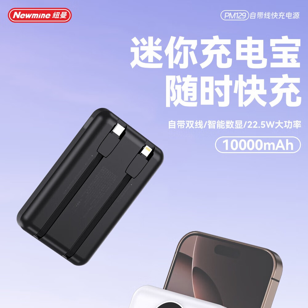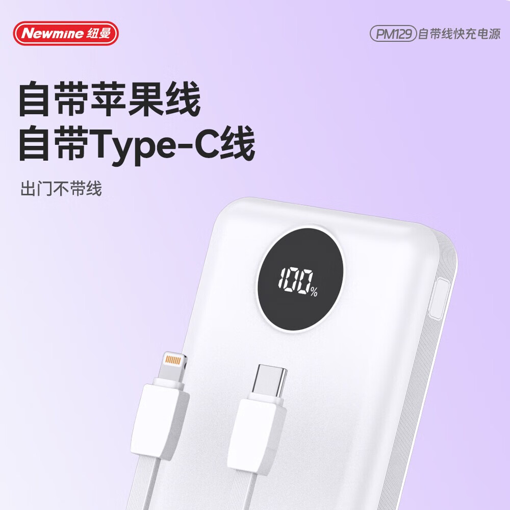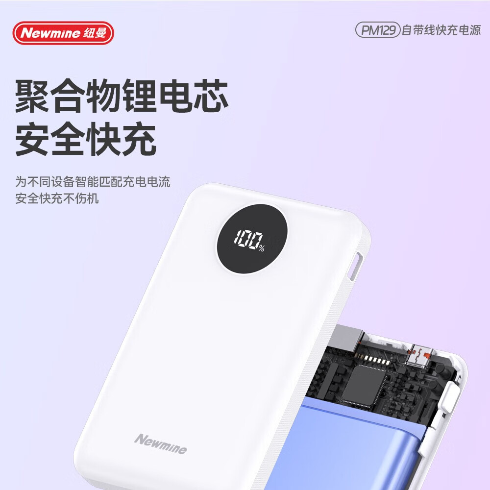 纽曼 10000毫安自带线快充数显移动电源 PM129