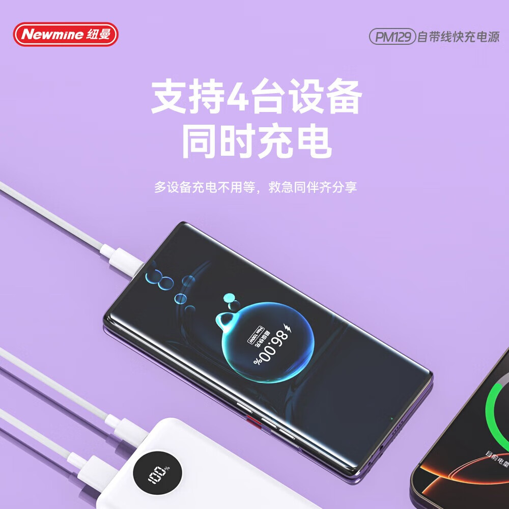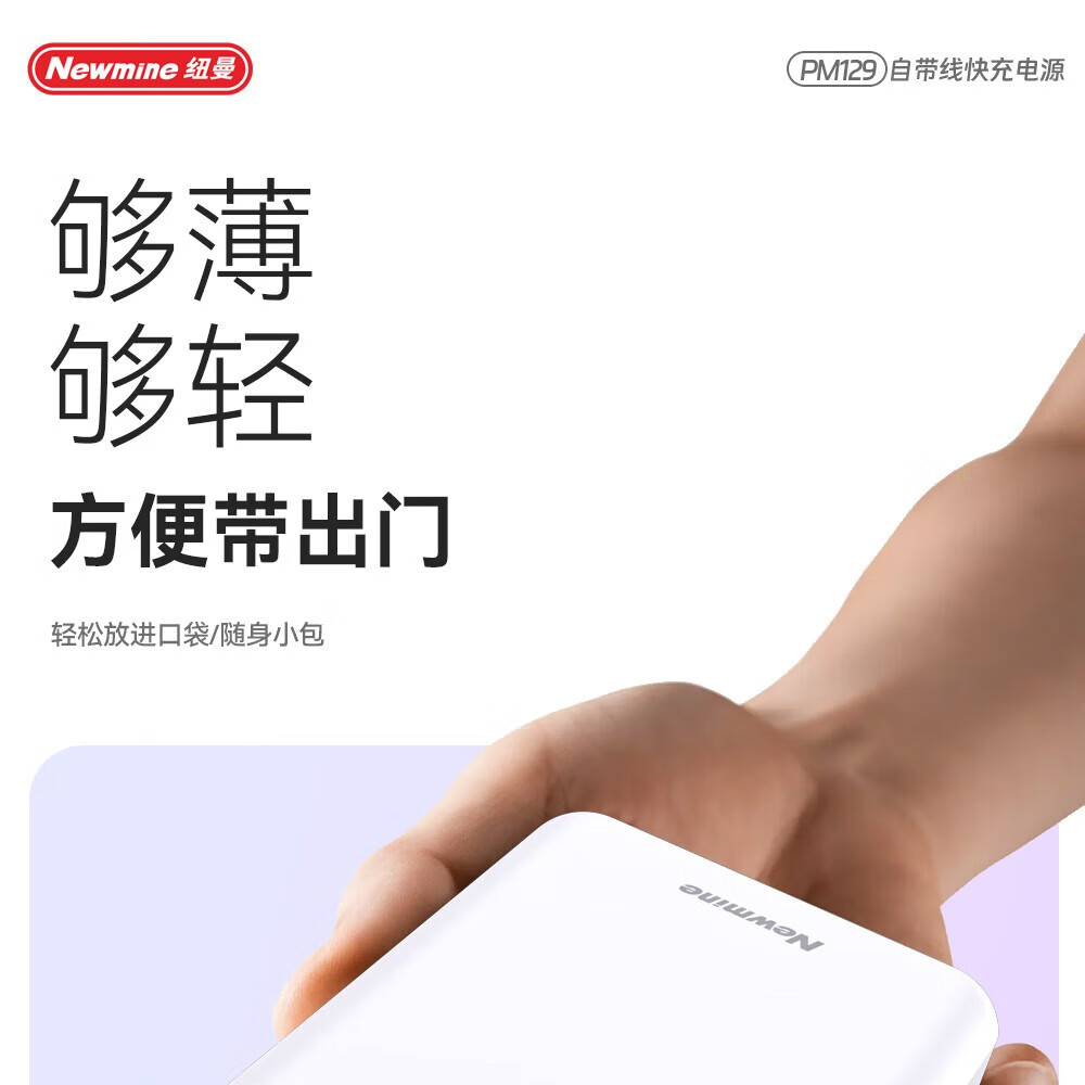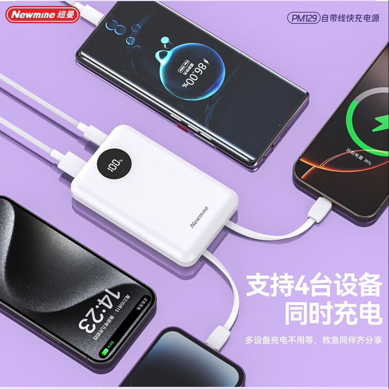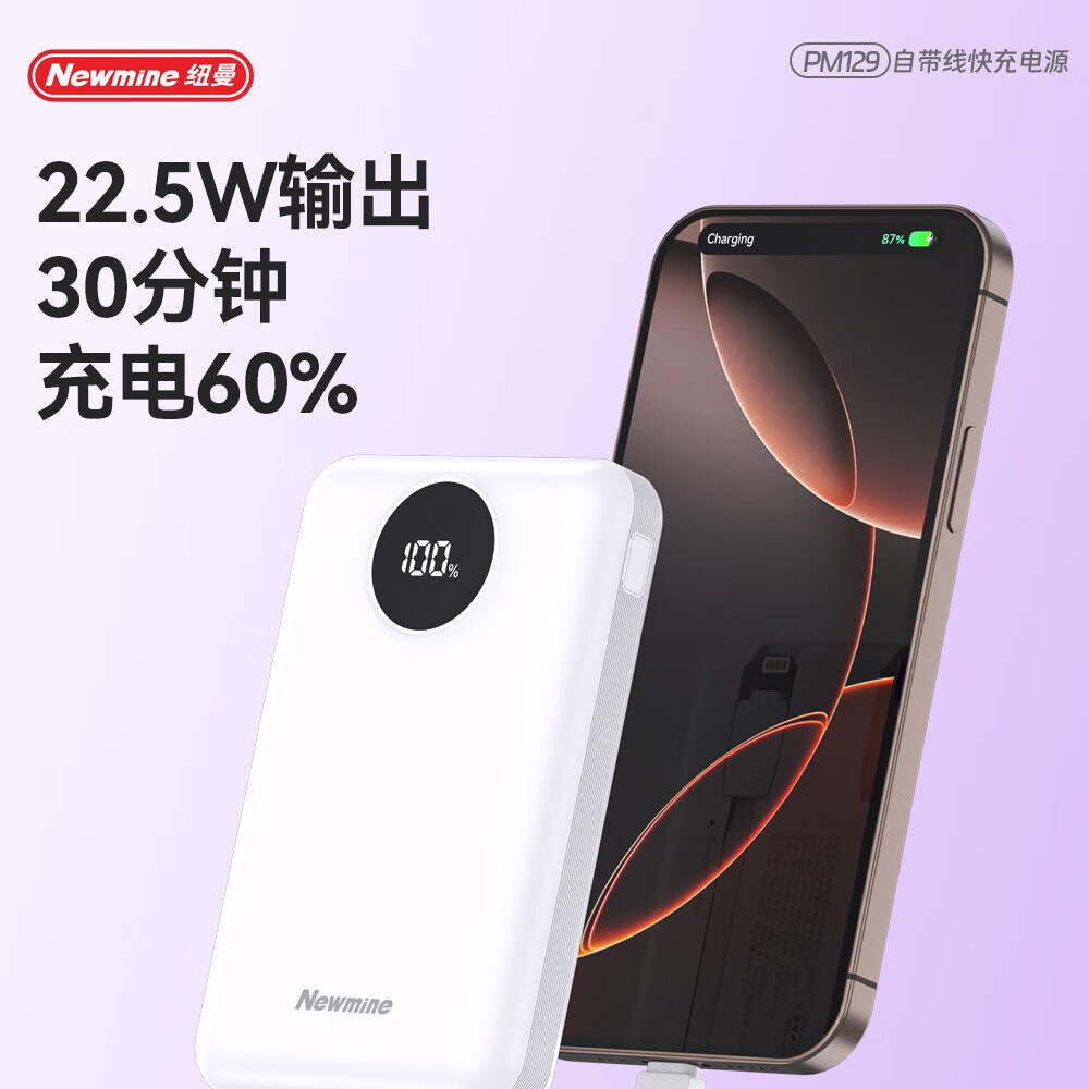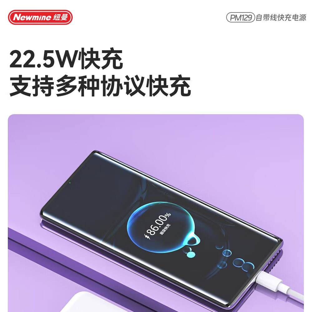 纽曼 10000毫安自带线快充数显移动电源 PM129