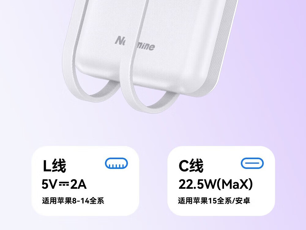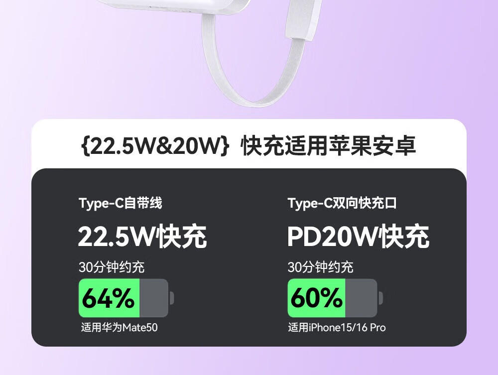 自带线 双向快充 轻薄便携