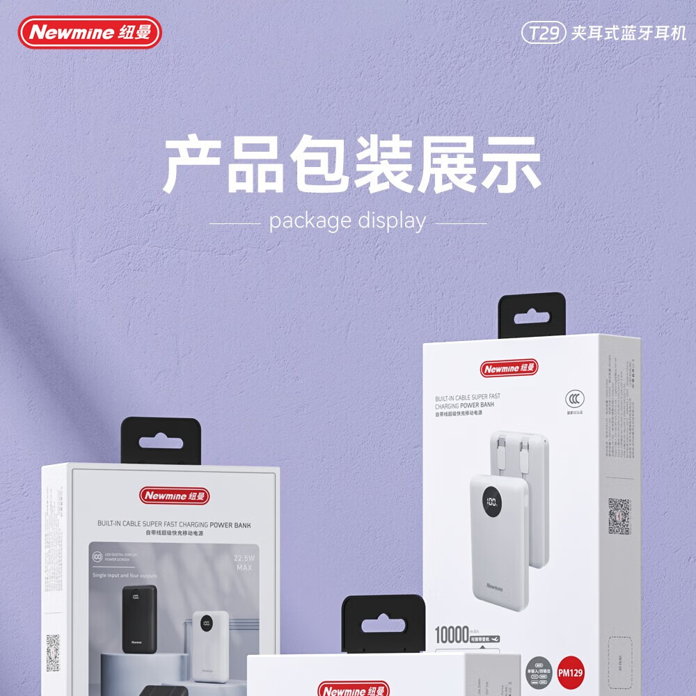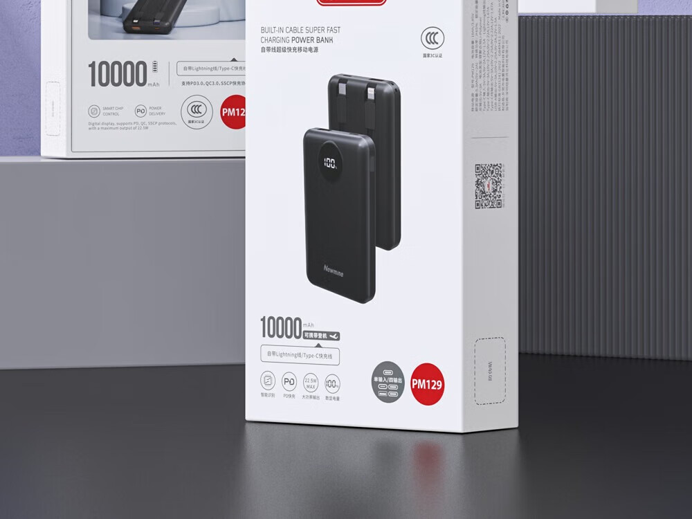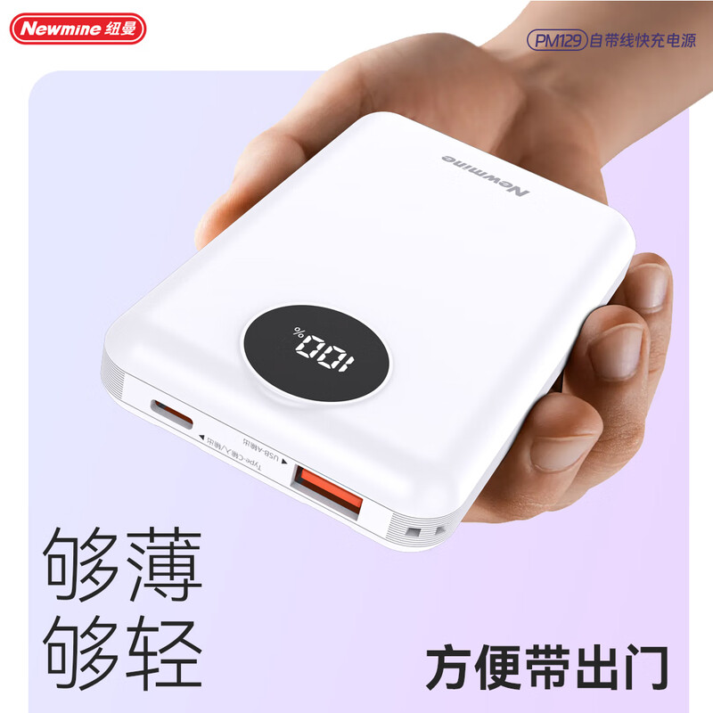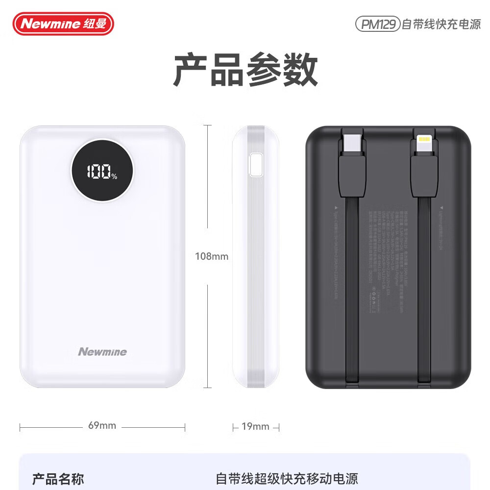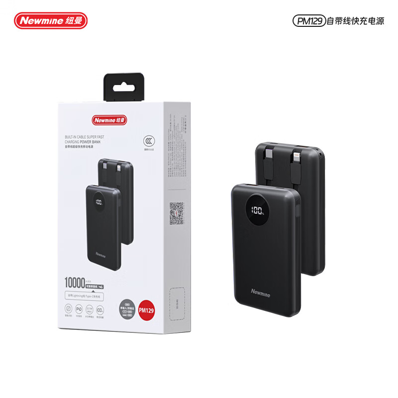 商品名称:纽曼 10000毫安自带线快充数显移动电源 PM129
