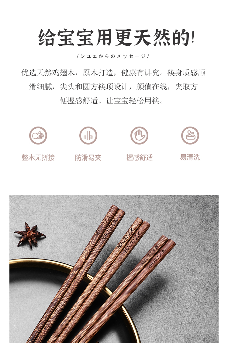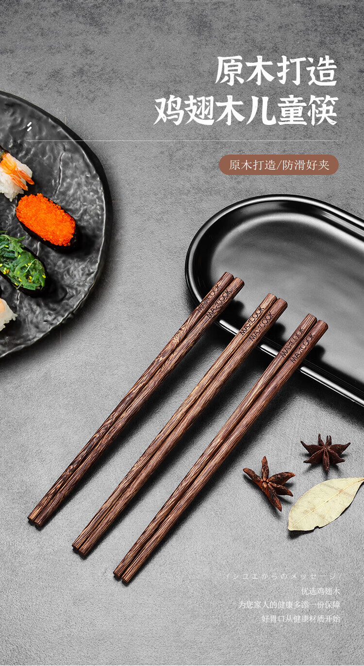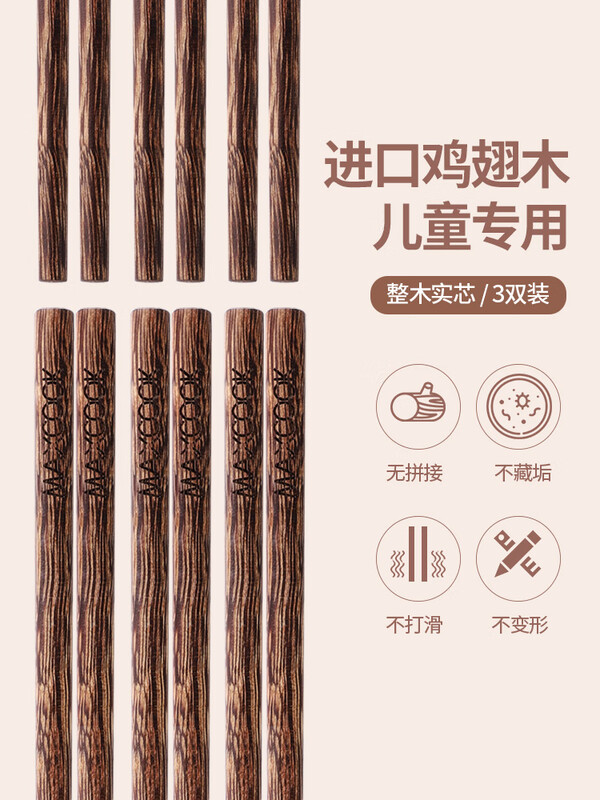 美厨 鸡翅木儿童筷3双装 MCK3820