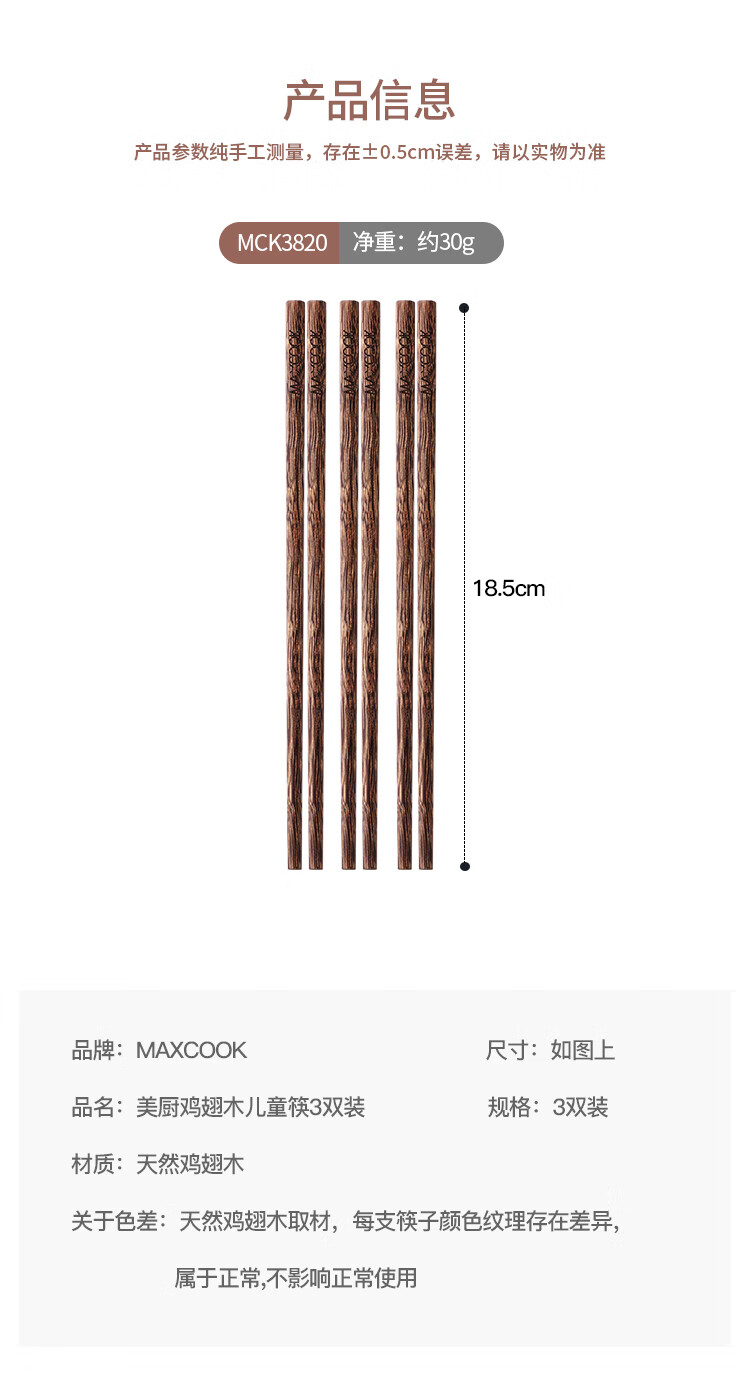 商品名称:美厨 鸡翅木儿童筷3双装 MCK3820