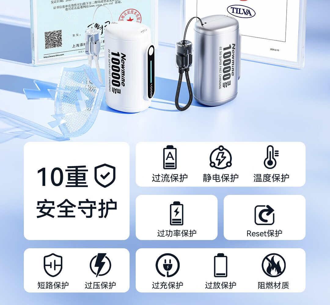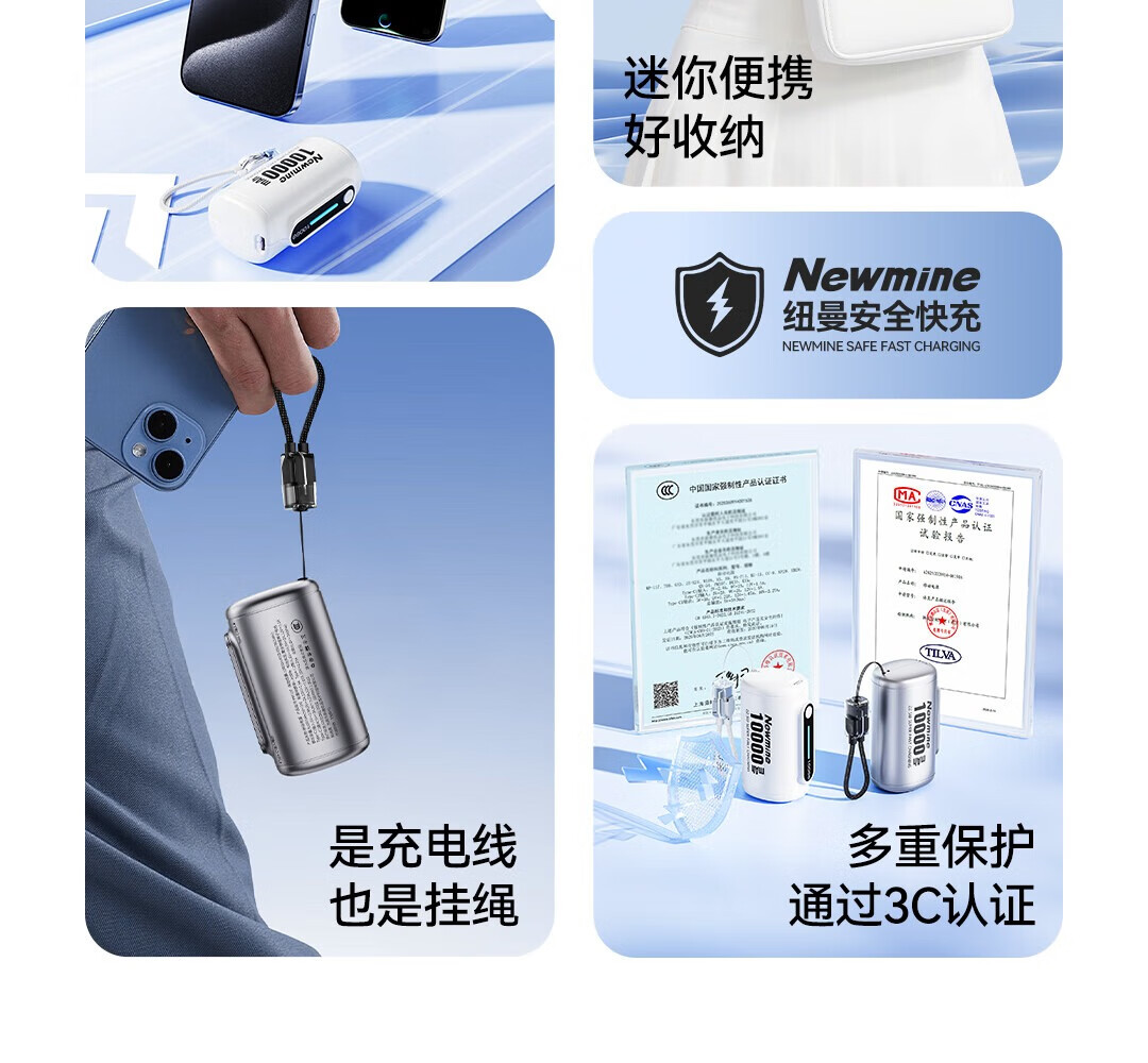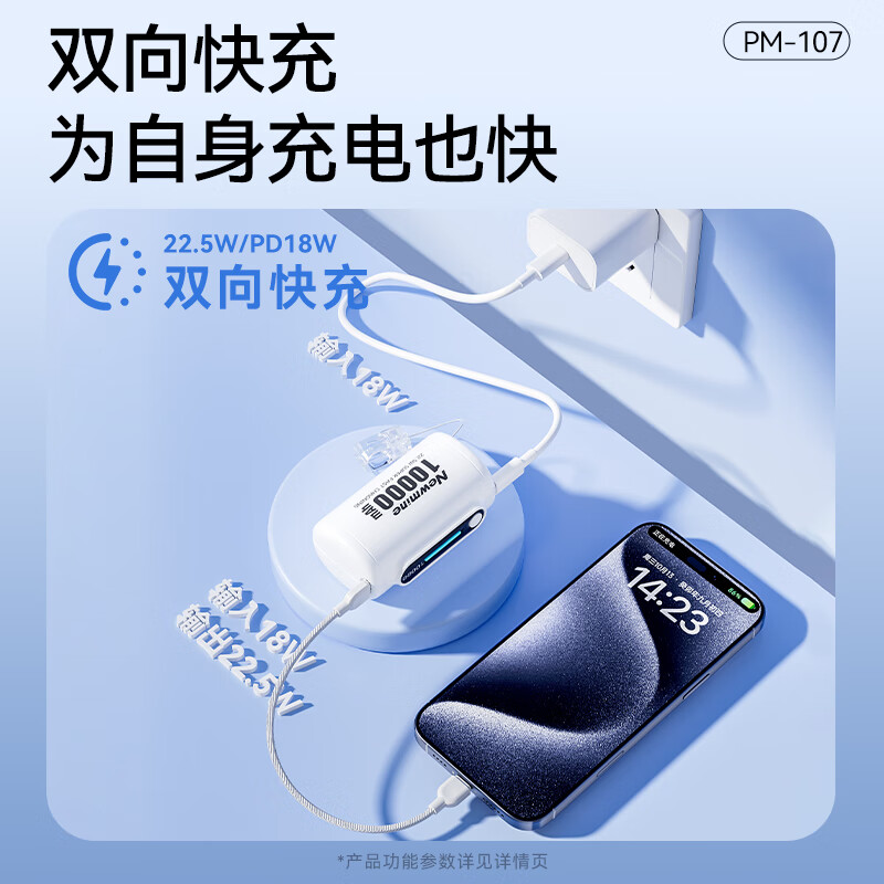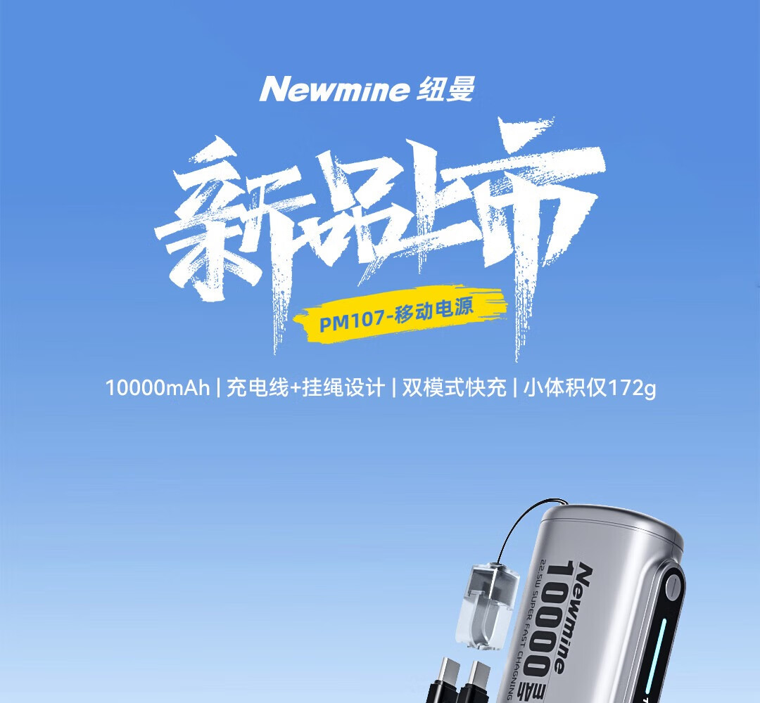 纽曼 10000毫安自带线胶囊移动电源 PM107