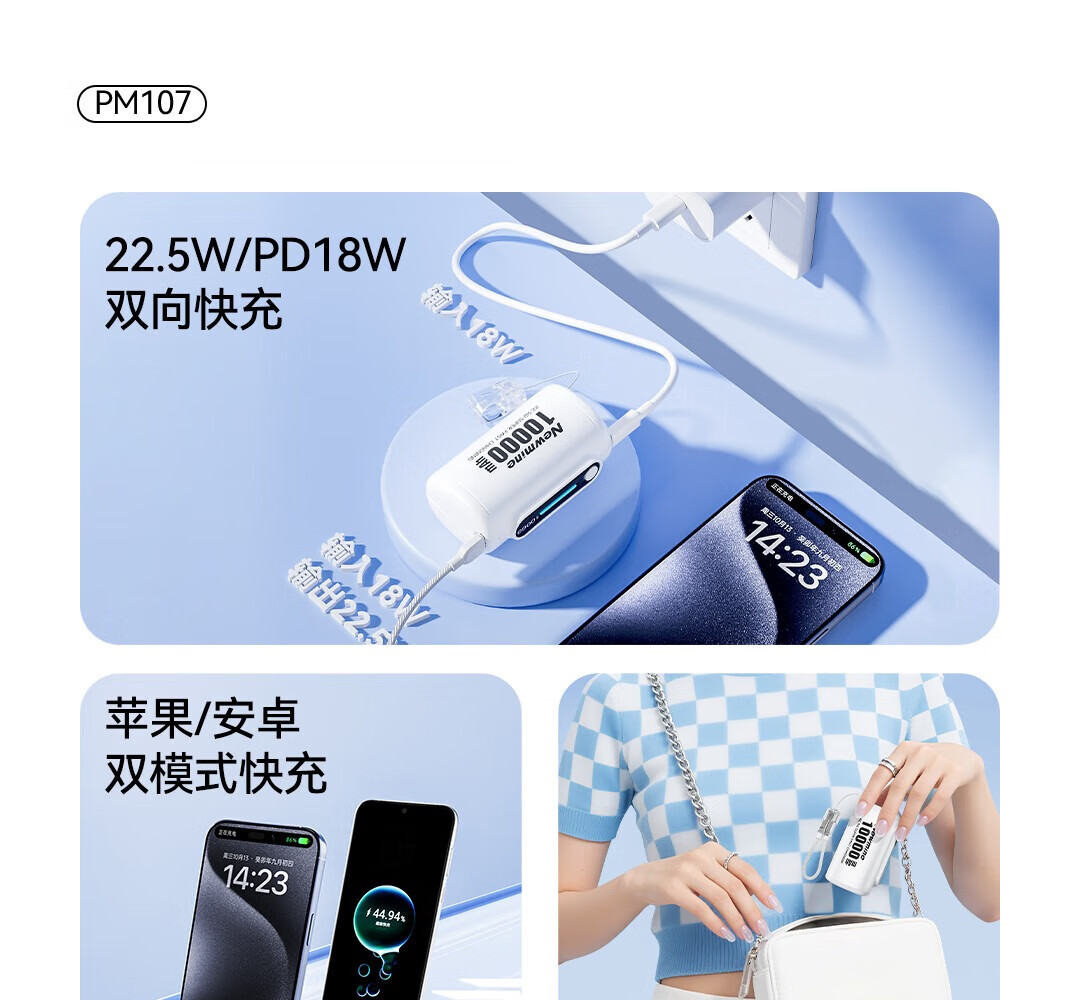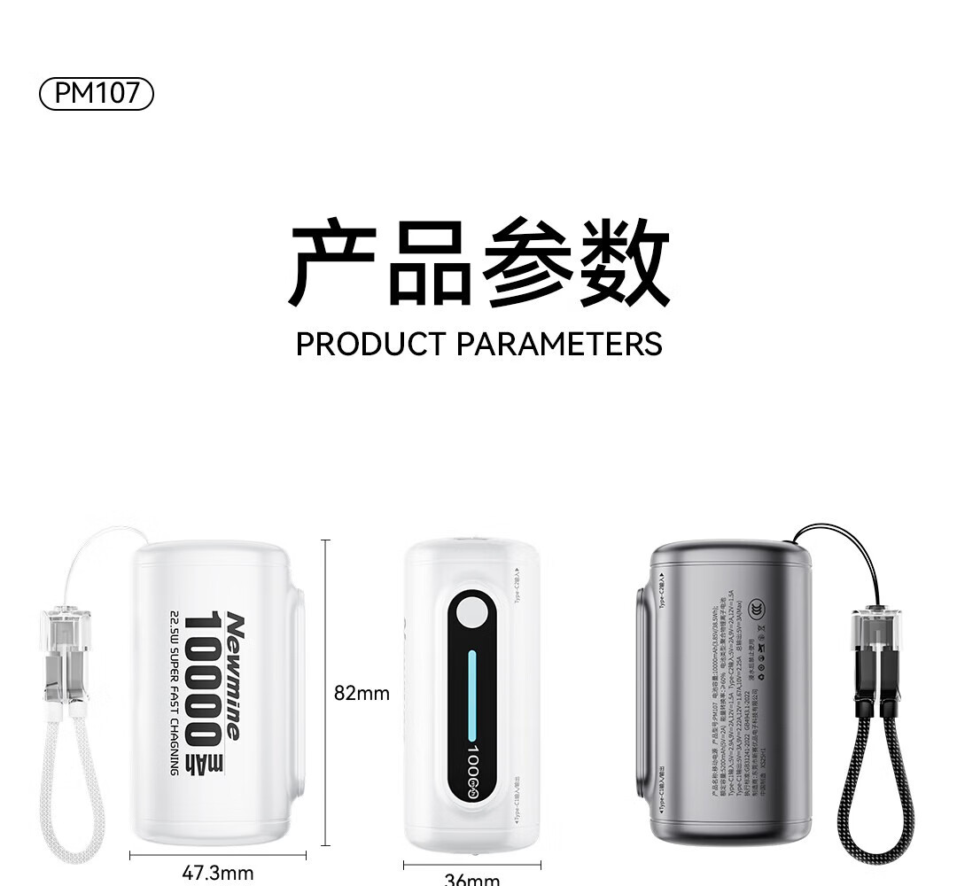 商品名称:纽曼 10000毫安自带线胶囊移动电源 PM107