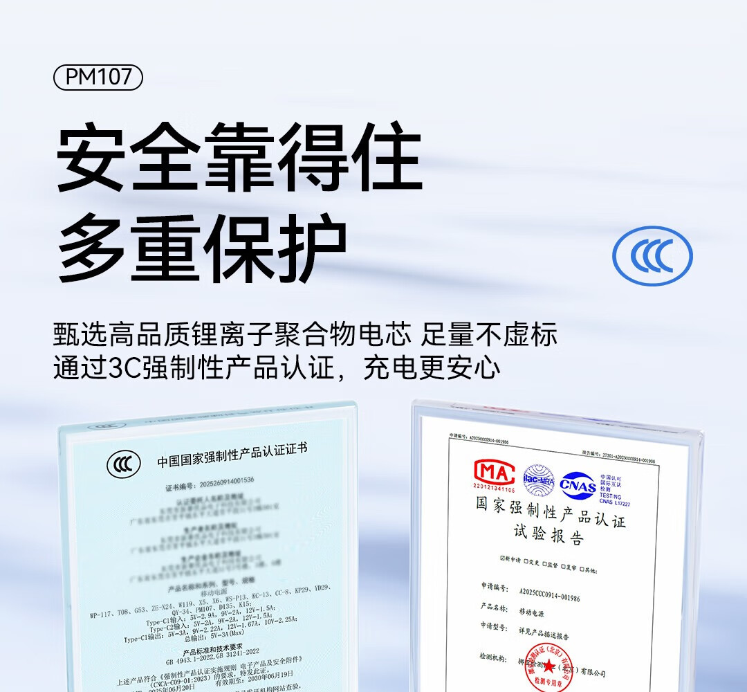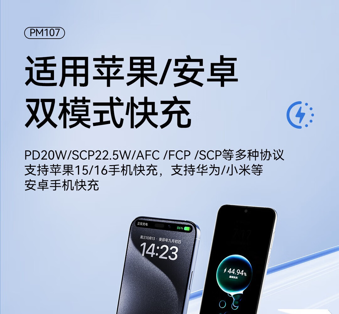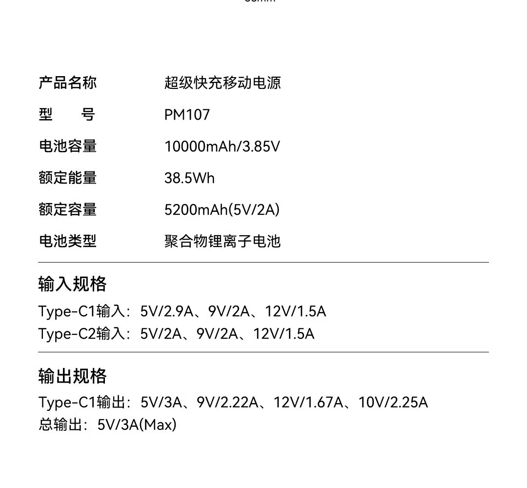 功能 :自带线 双向快充 可上飞机 (27000mAh以下)