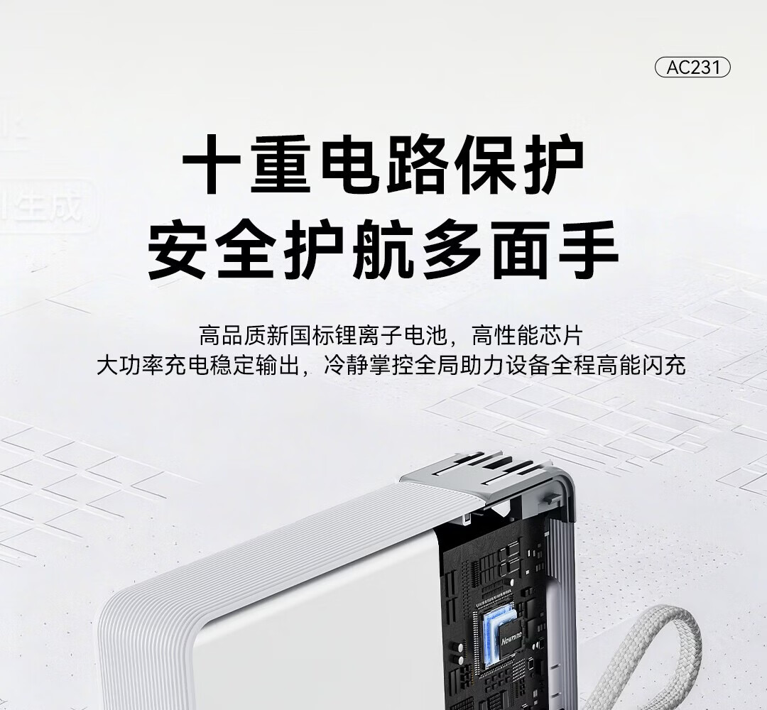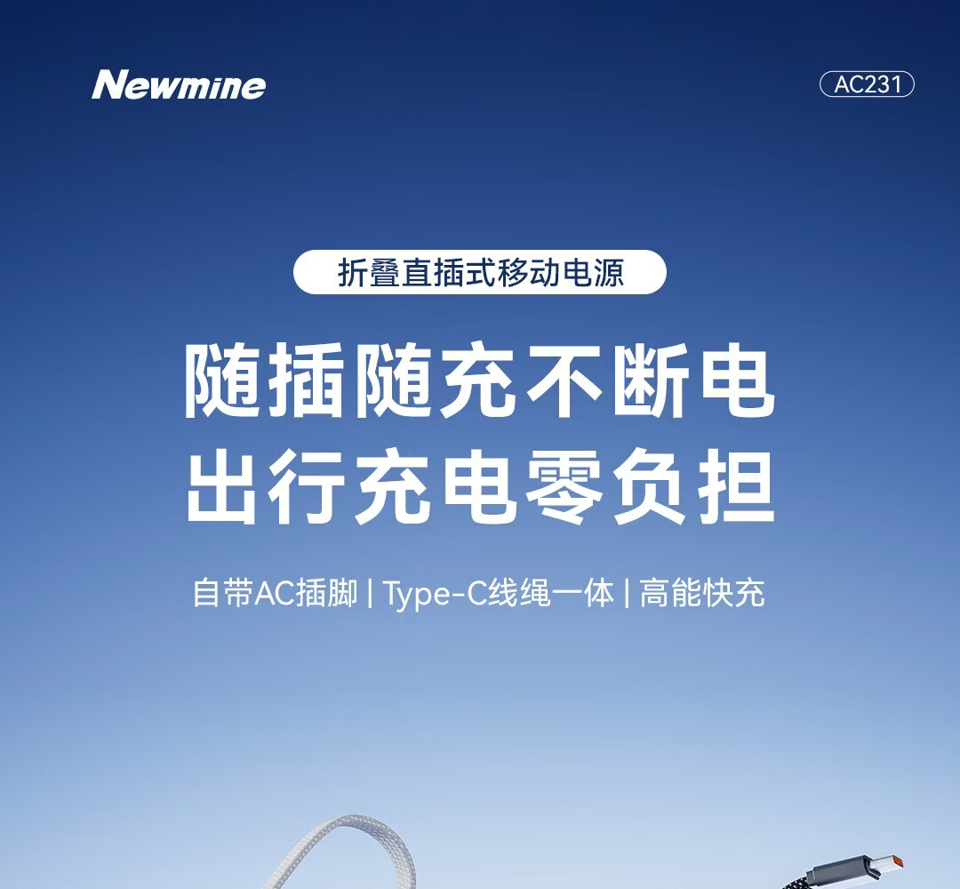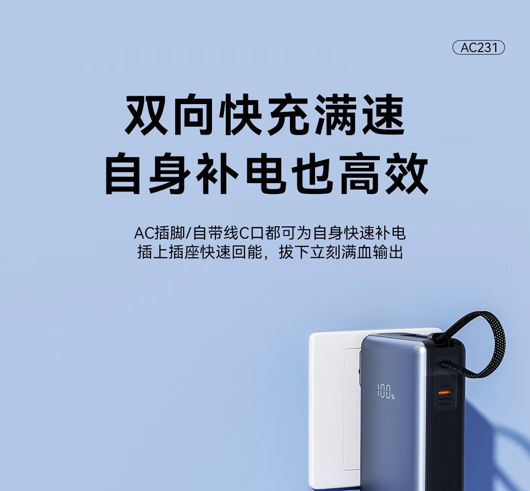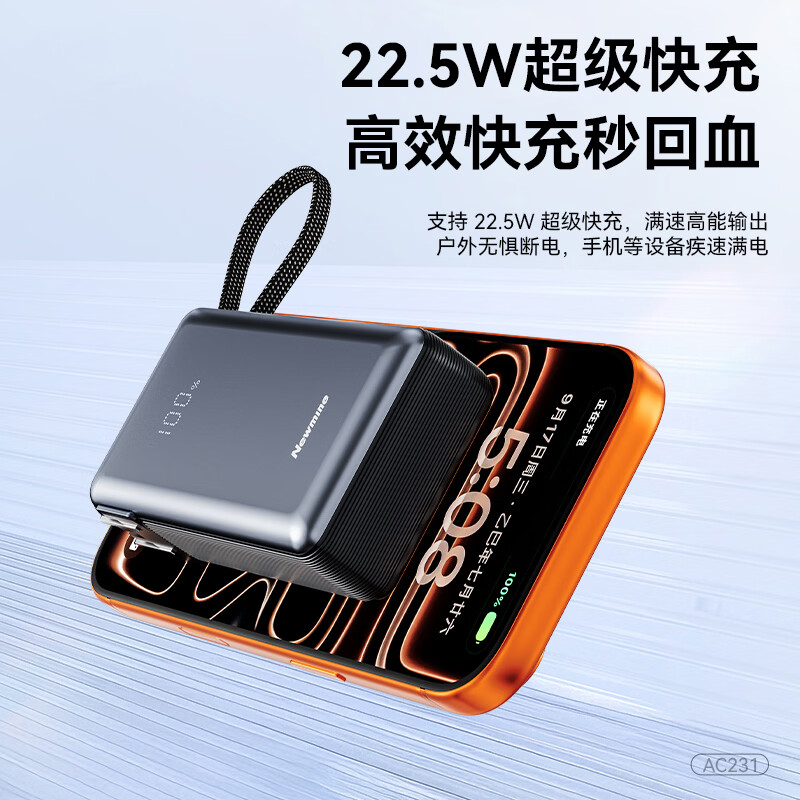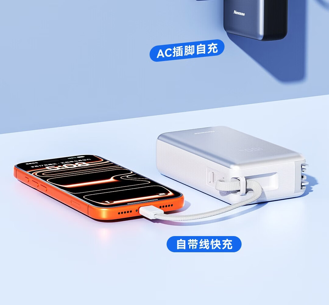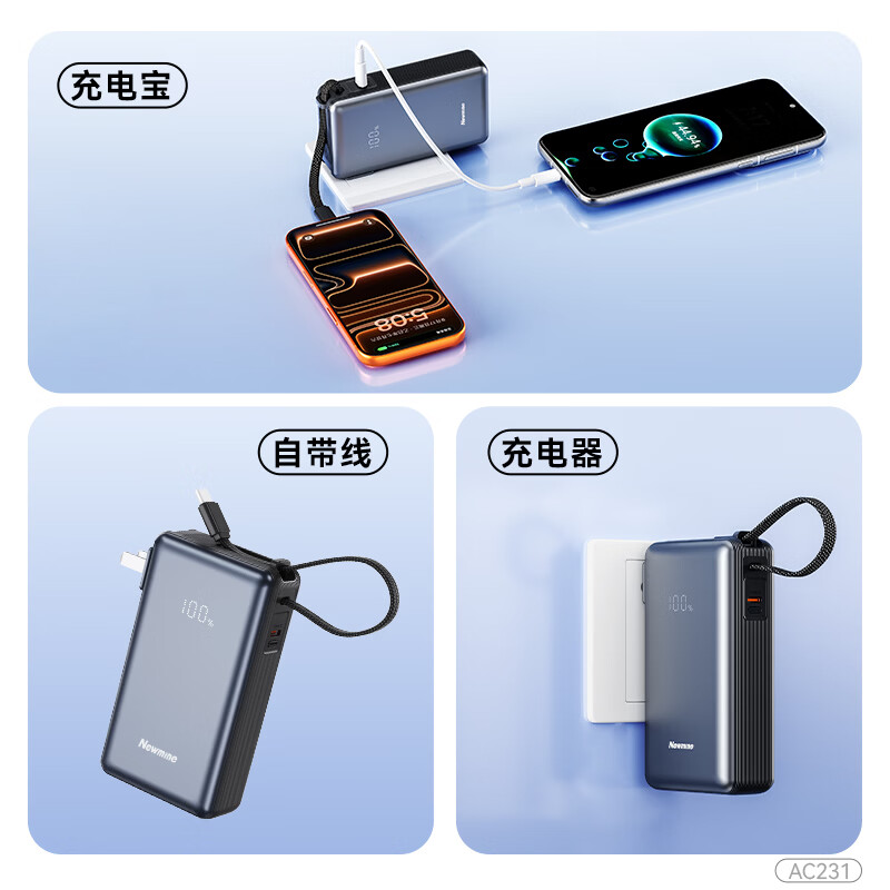 商品名称:纽曼 20000毫安AC直插快充带线移动电源 AC231