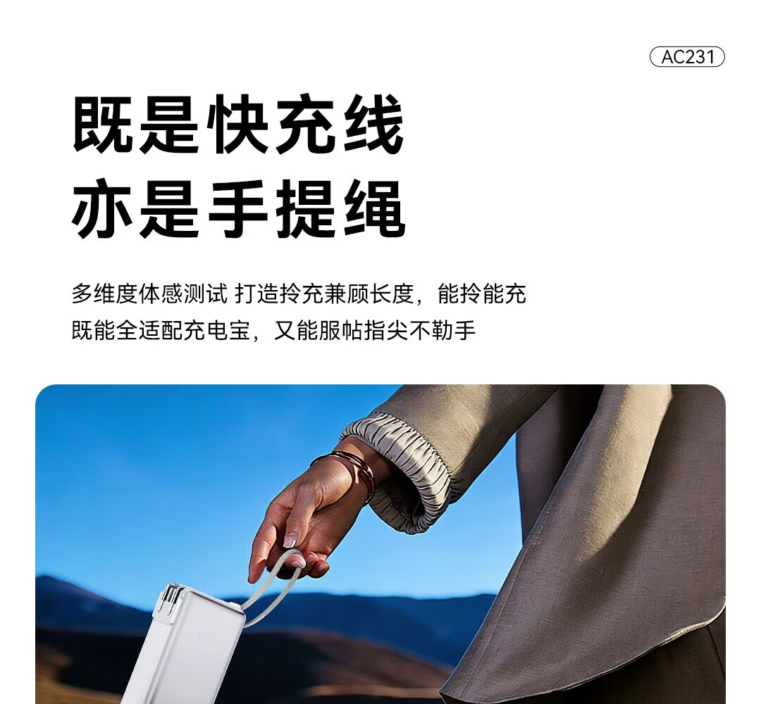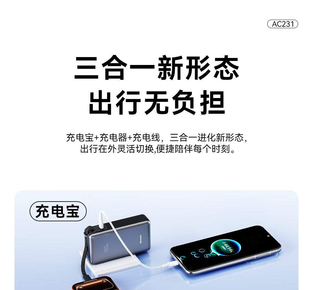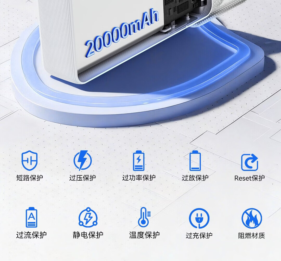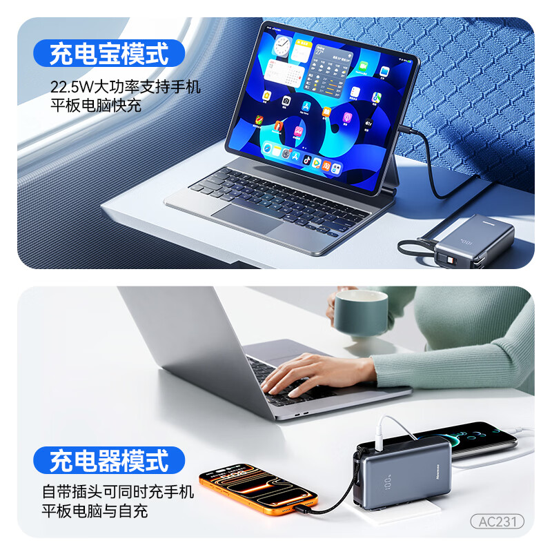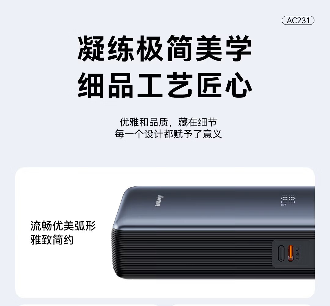 商品名称:纽曼 20000毫安AC直插快充带线移动电源 AC231