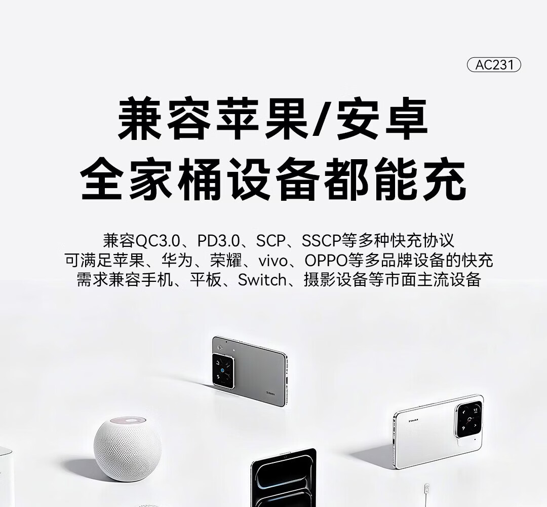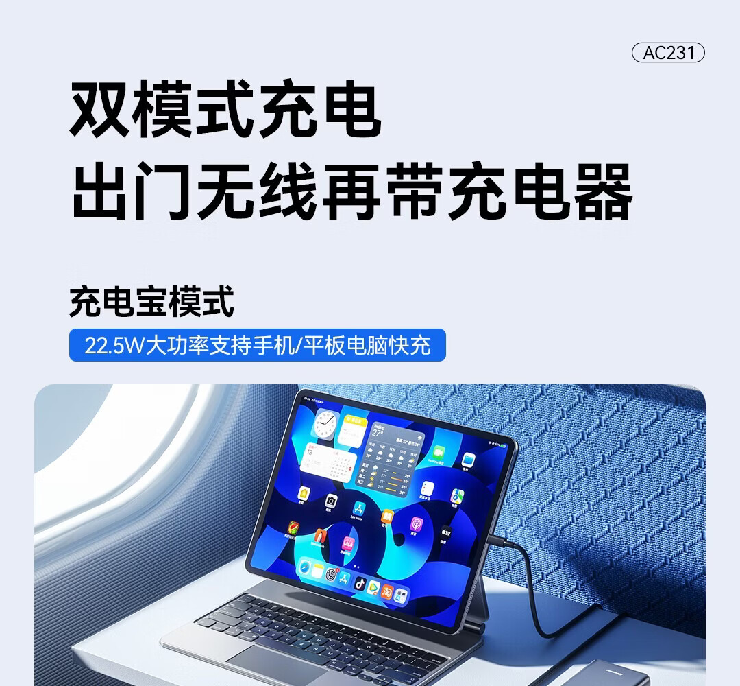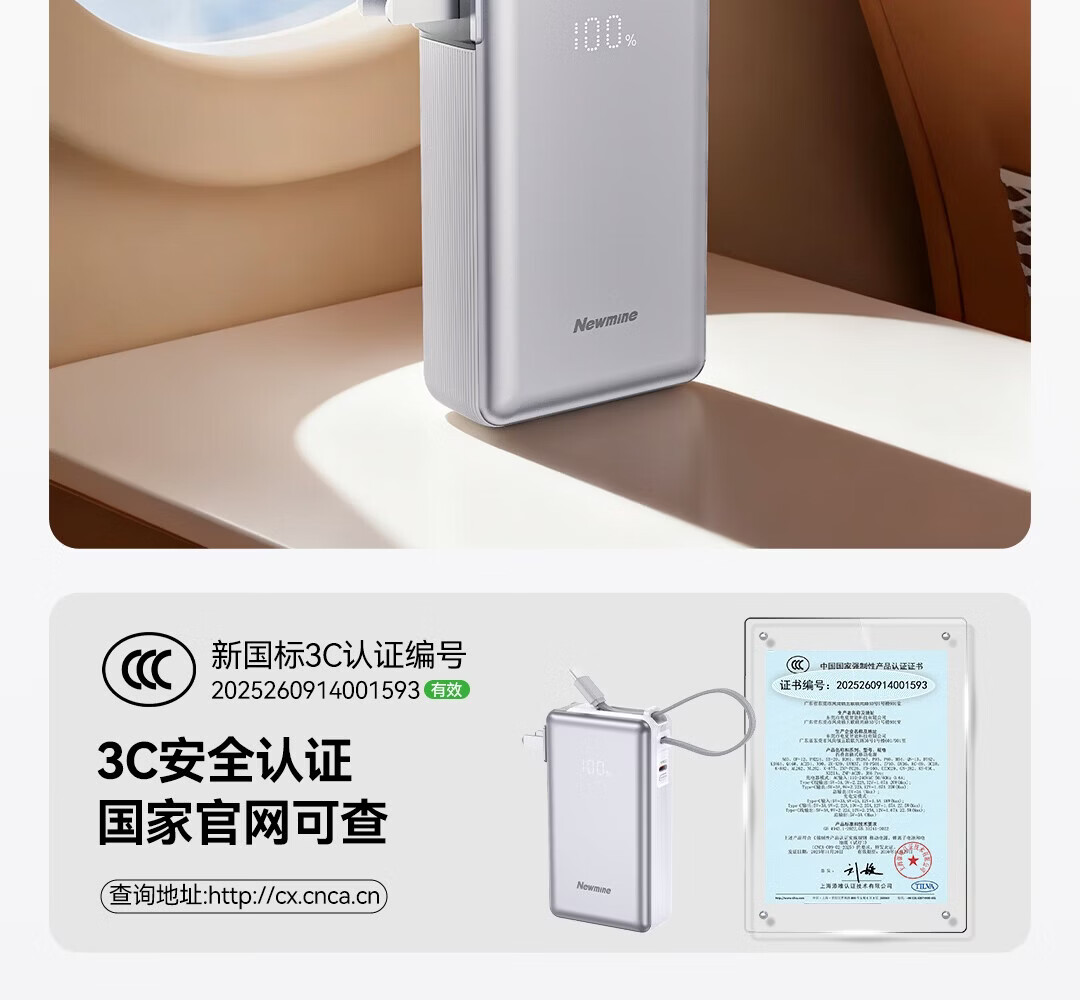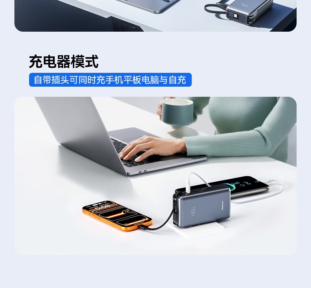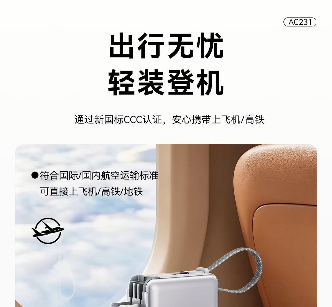 商品名称:纽曼 20000毫安AC直插快充带线移动电源 AC231