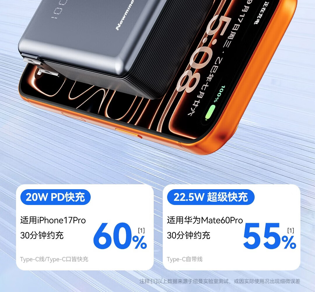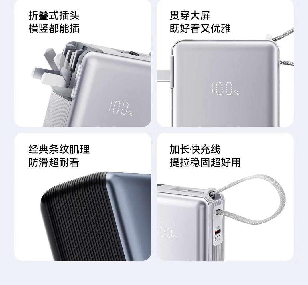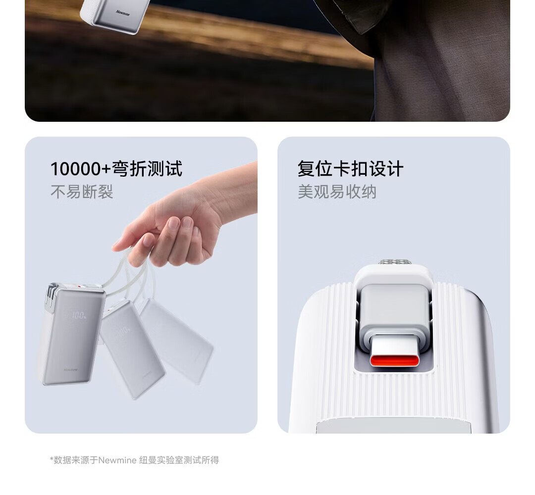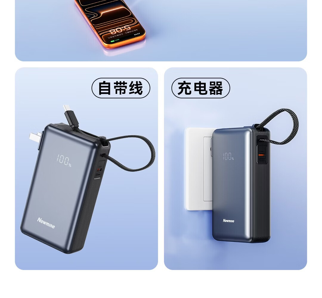 纽曼 10000毫安自带三线快充数显移动电源 PM153