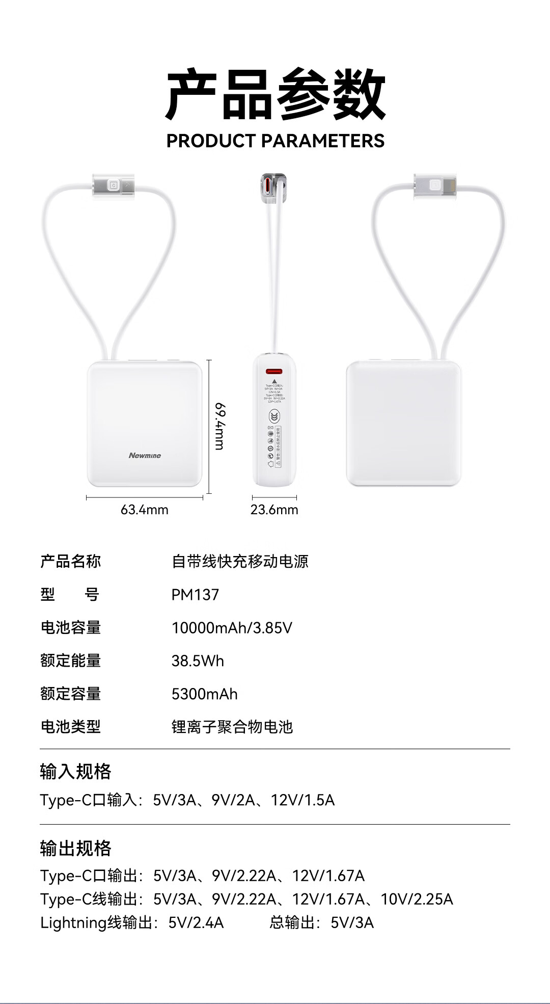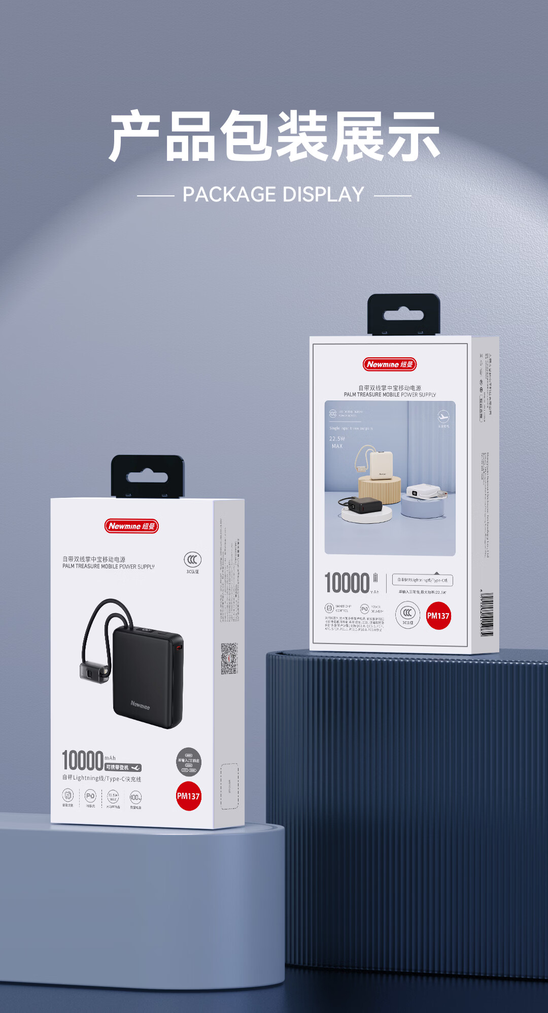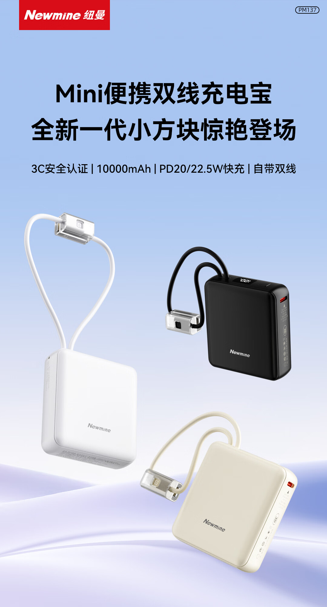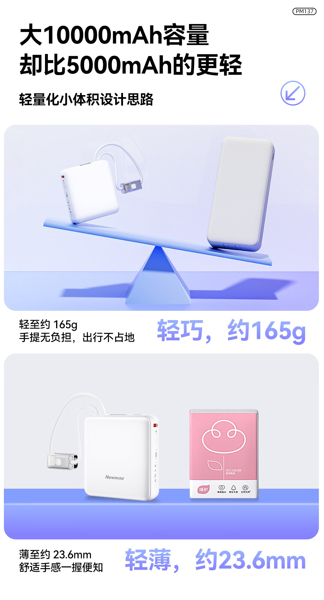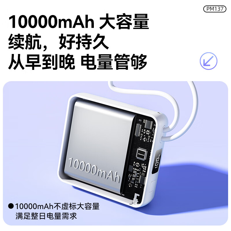 商品名称:纽曼 10000毫安迷你双线快充移动电源 PM137