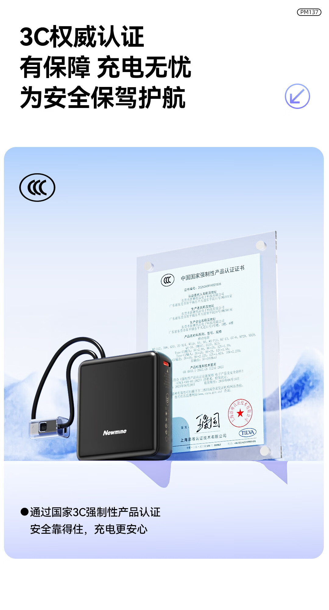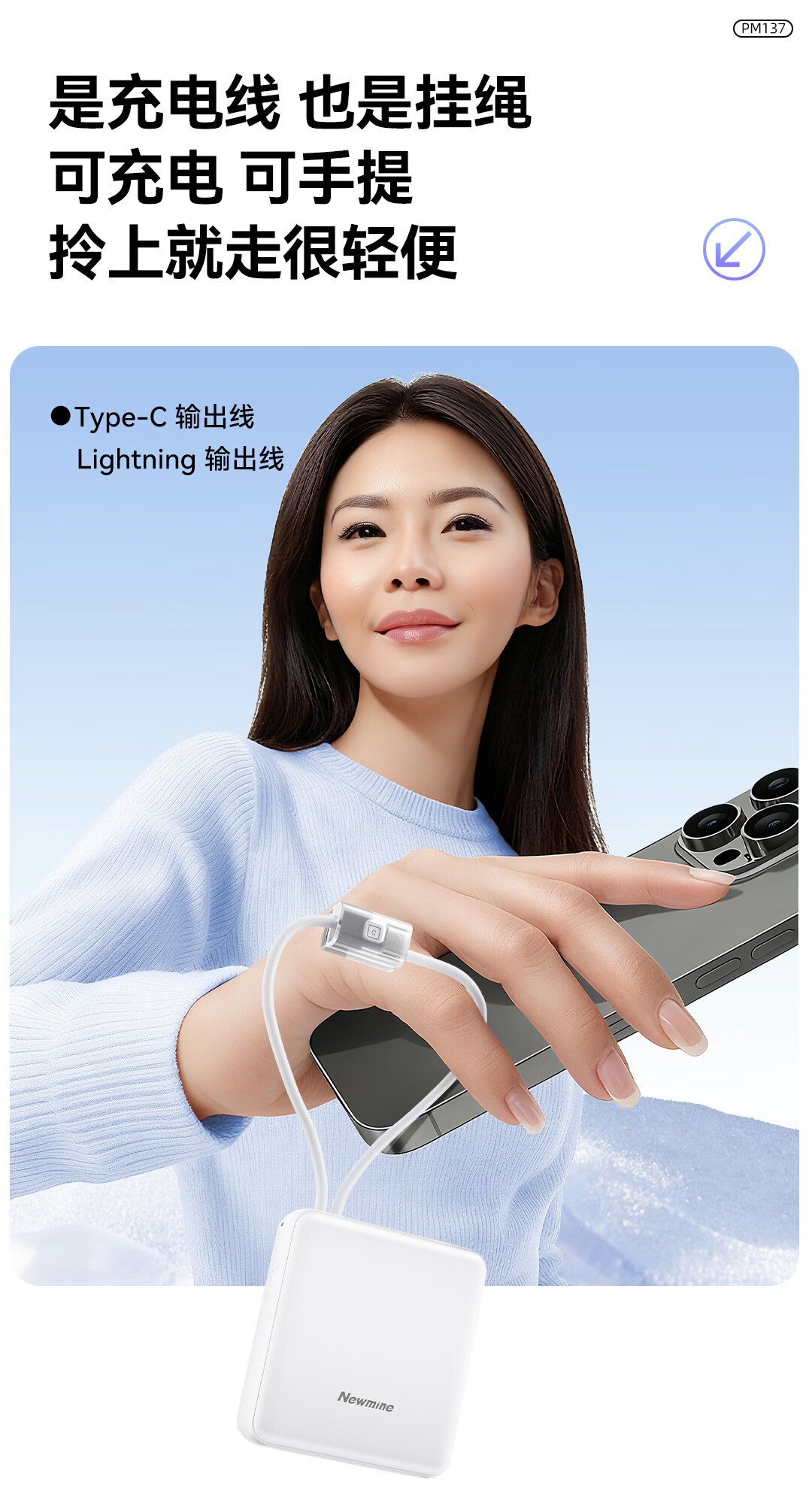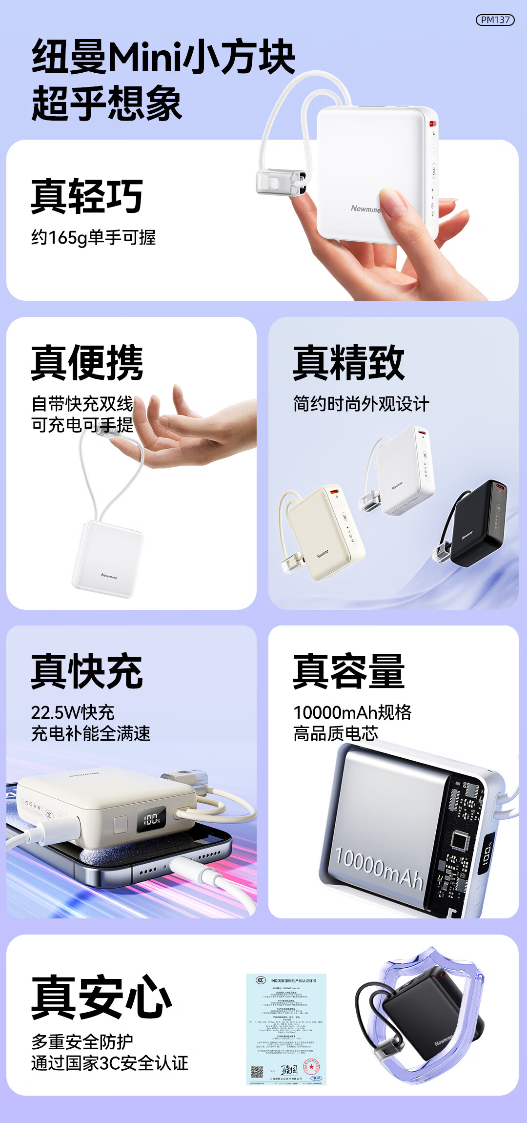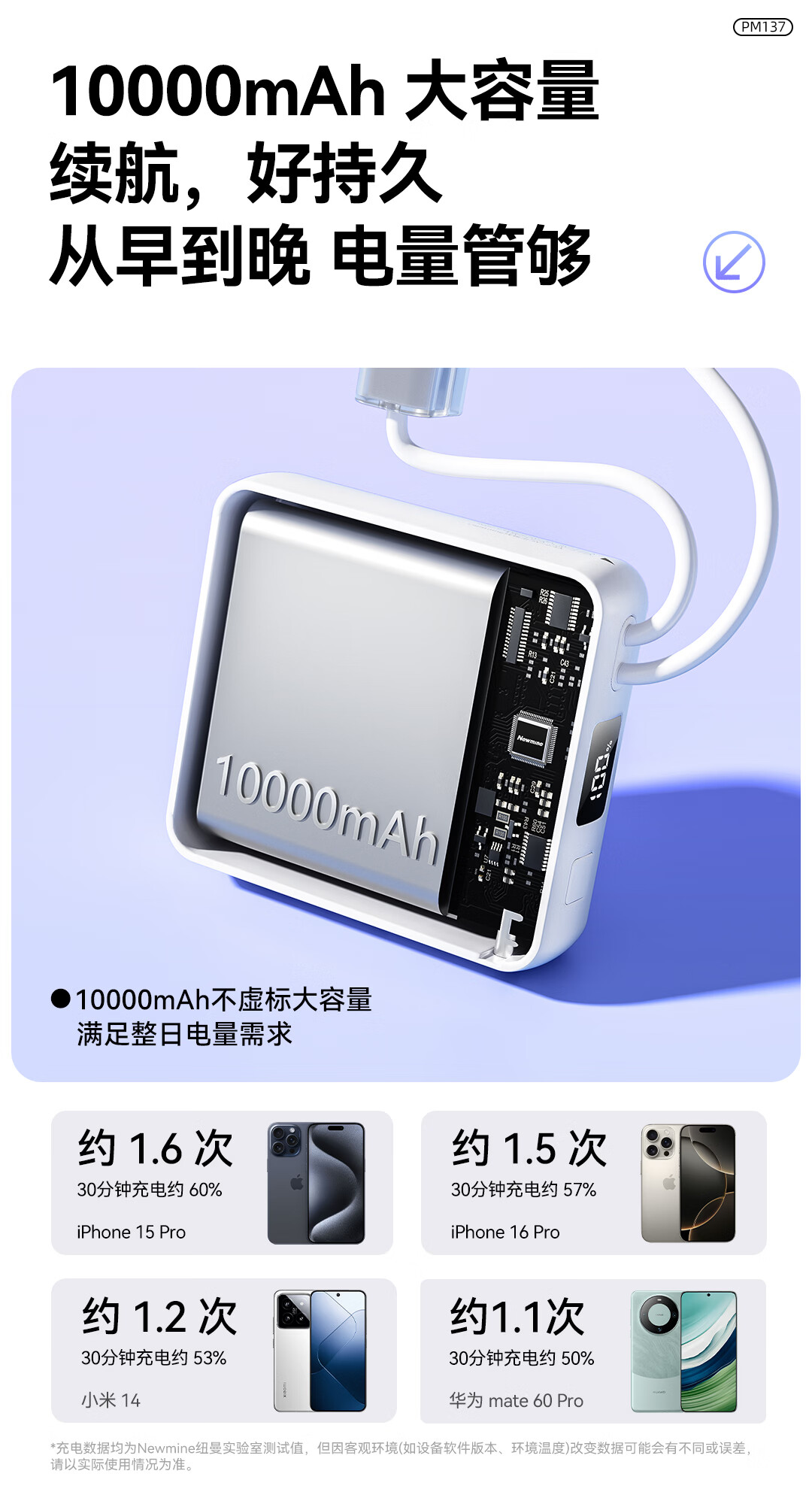 商品名称:纽曼 10000毫安迷你双线快充移动电源 PM137