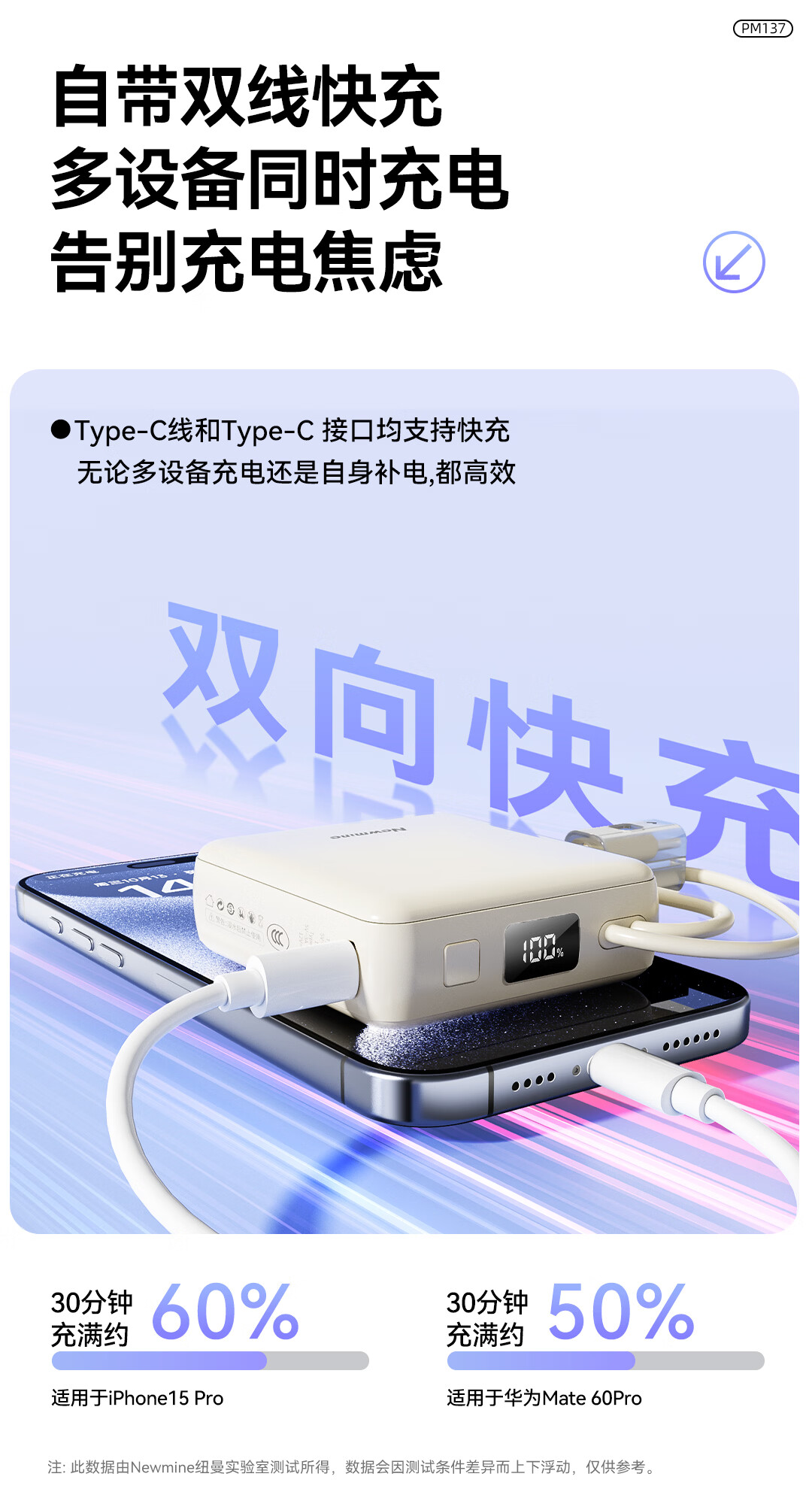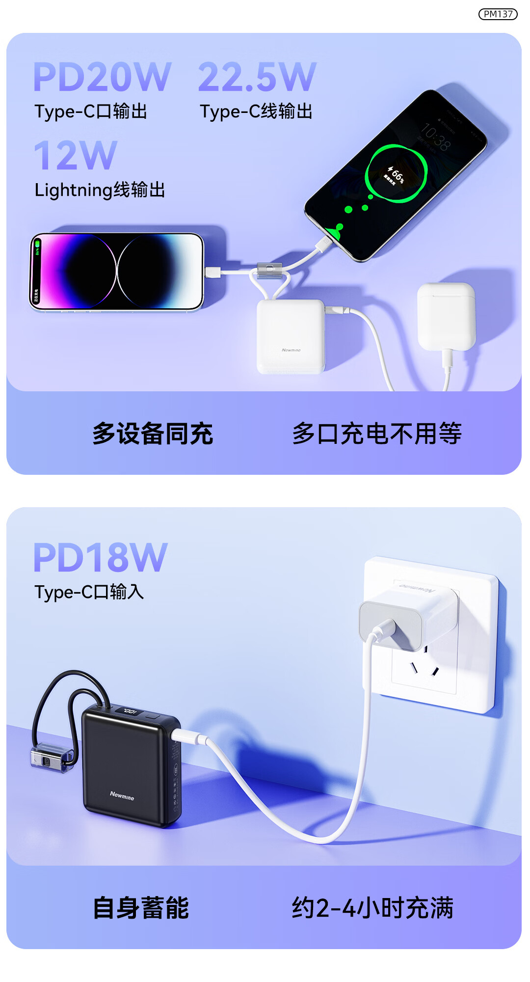 纽曼 10000毫安迷你双线快充移动电源 PM137