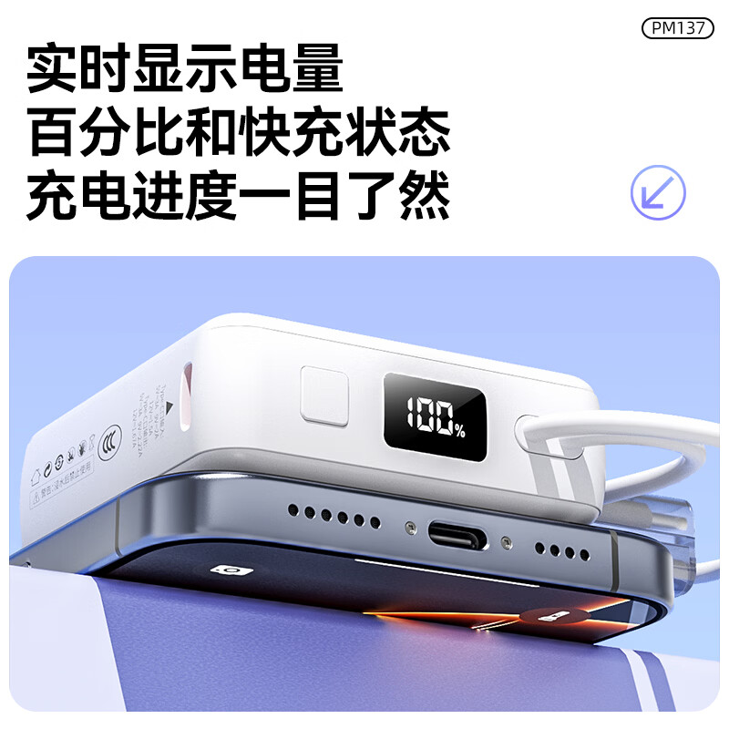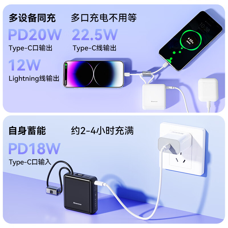 纽曼 10000毫安自带线快充数显移动电源 P188