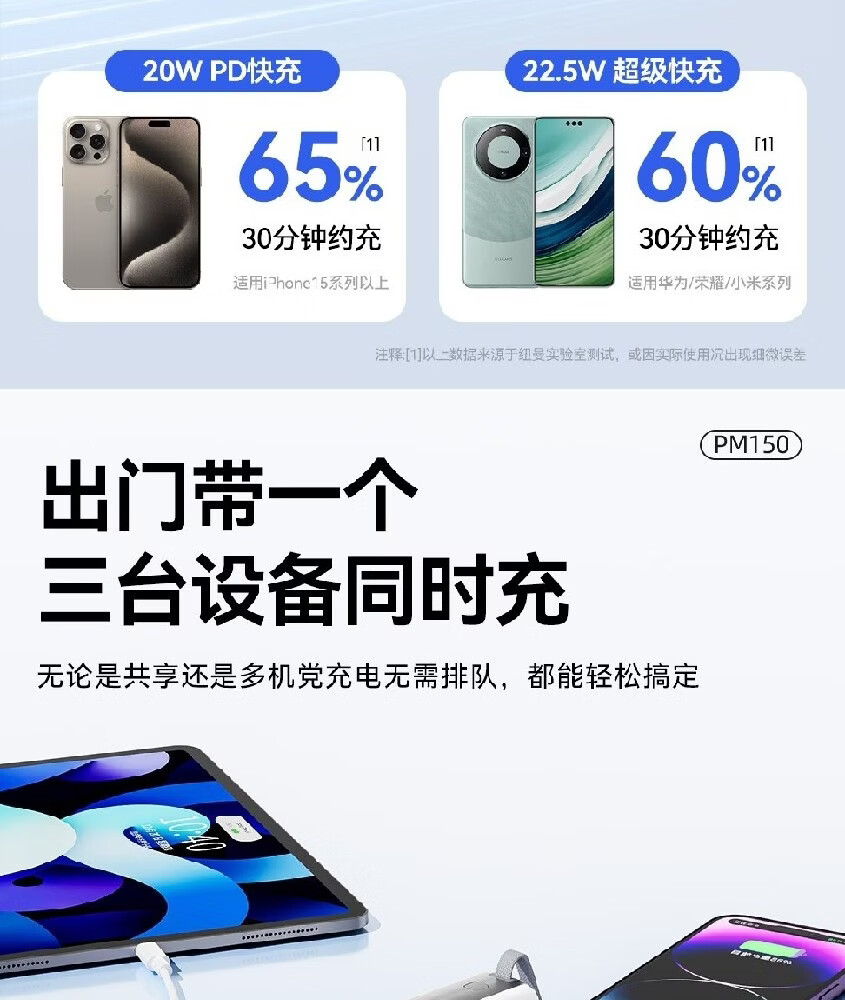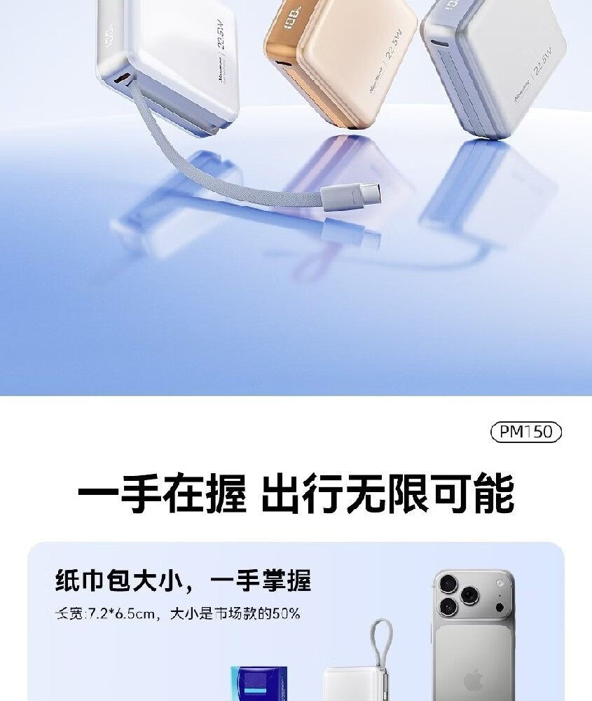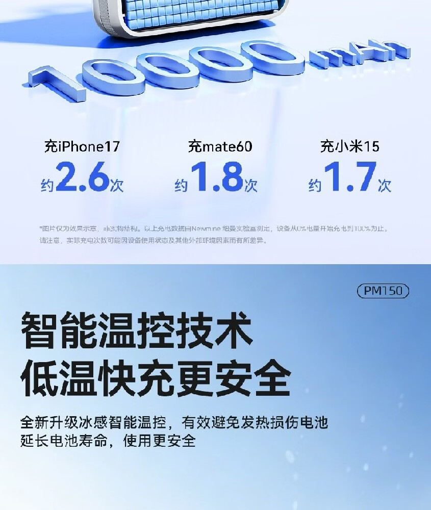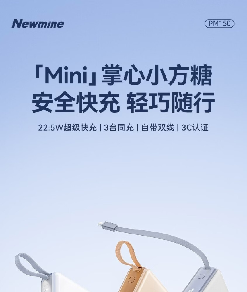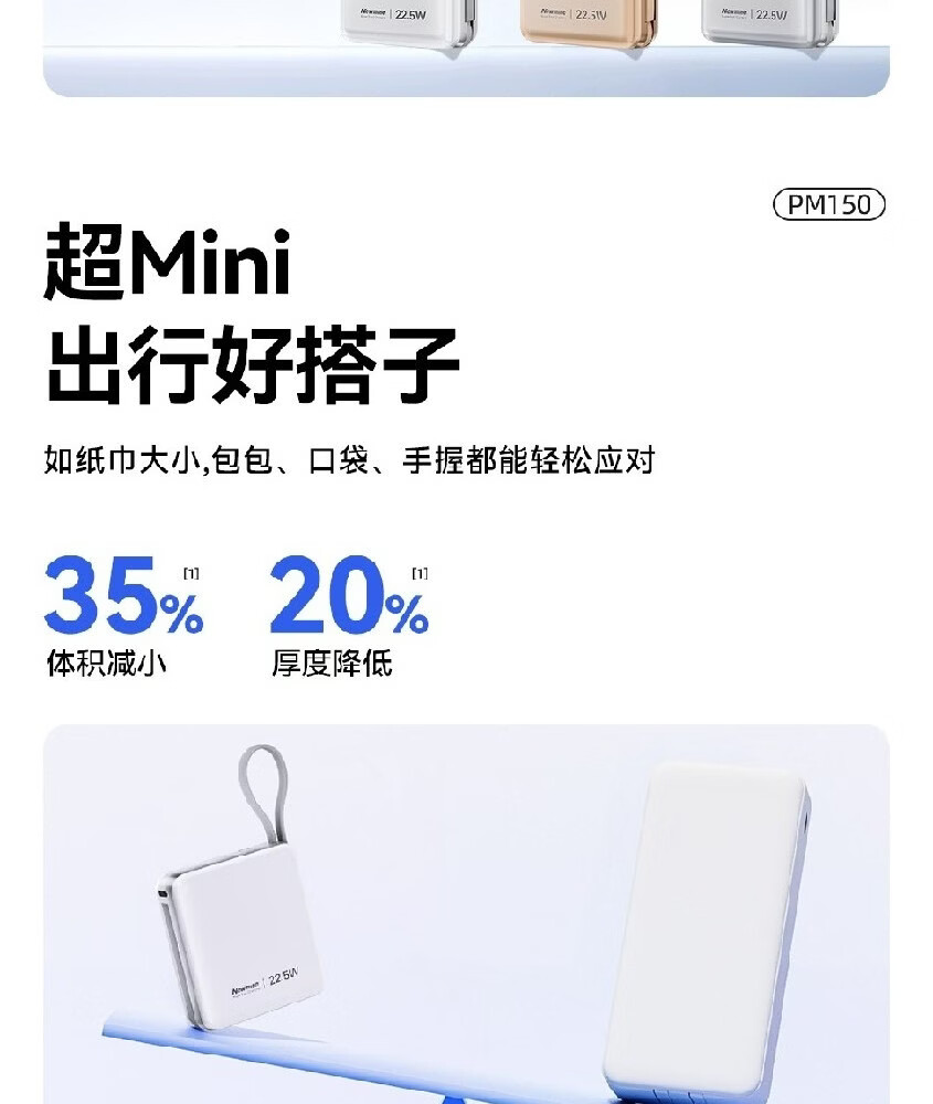 商品名称:纽曼 10000毫安迷你双线快充移动电源 PM150