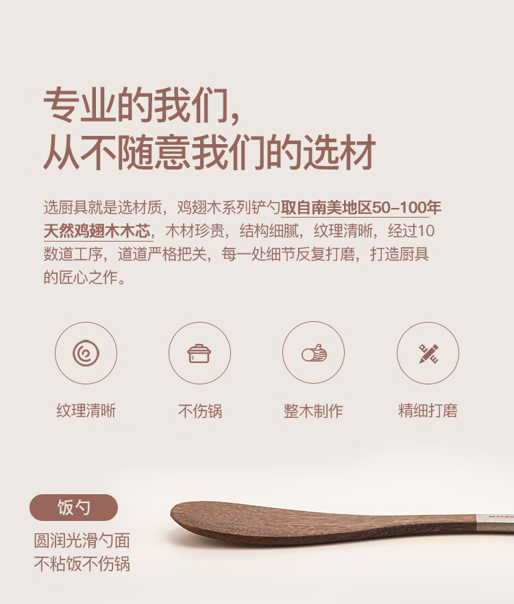 商品名称:美厨 鸡翅木烤漆防滑手柄饭勺 23*8cm MCPJ1702