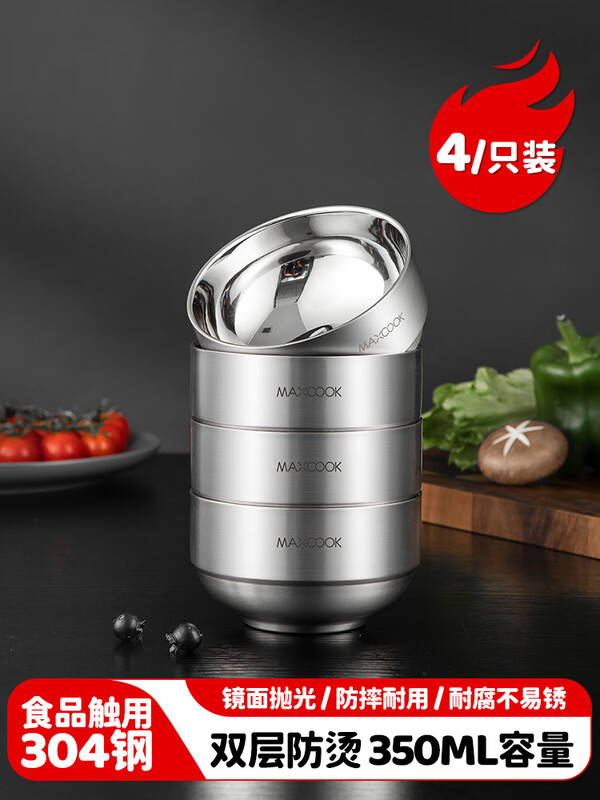 商品名称:美厨304不锈钢双层隔热碗11.5CM(4只装) MCWA8014