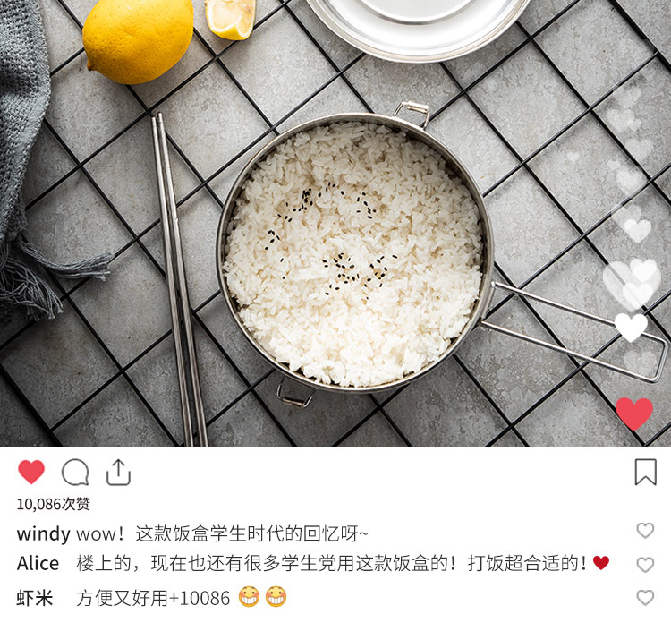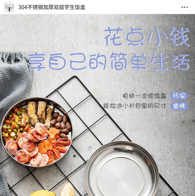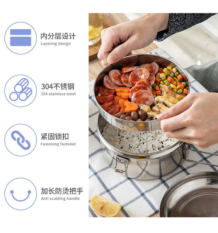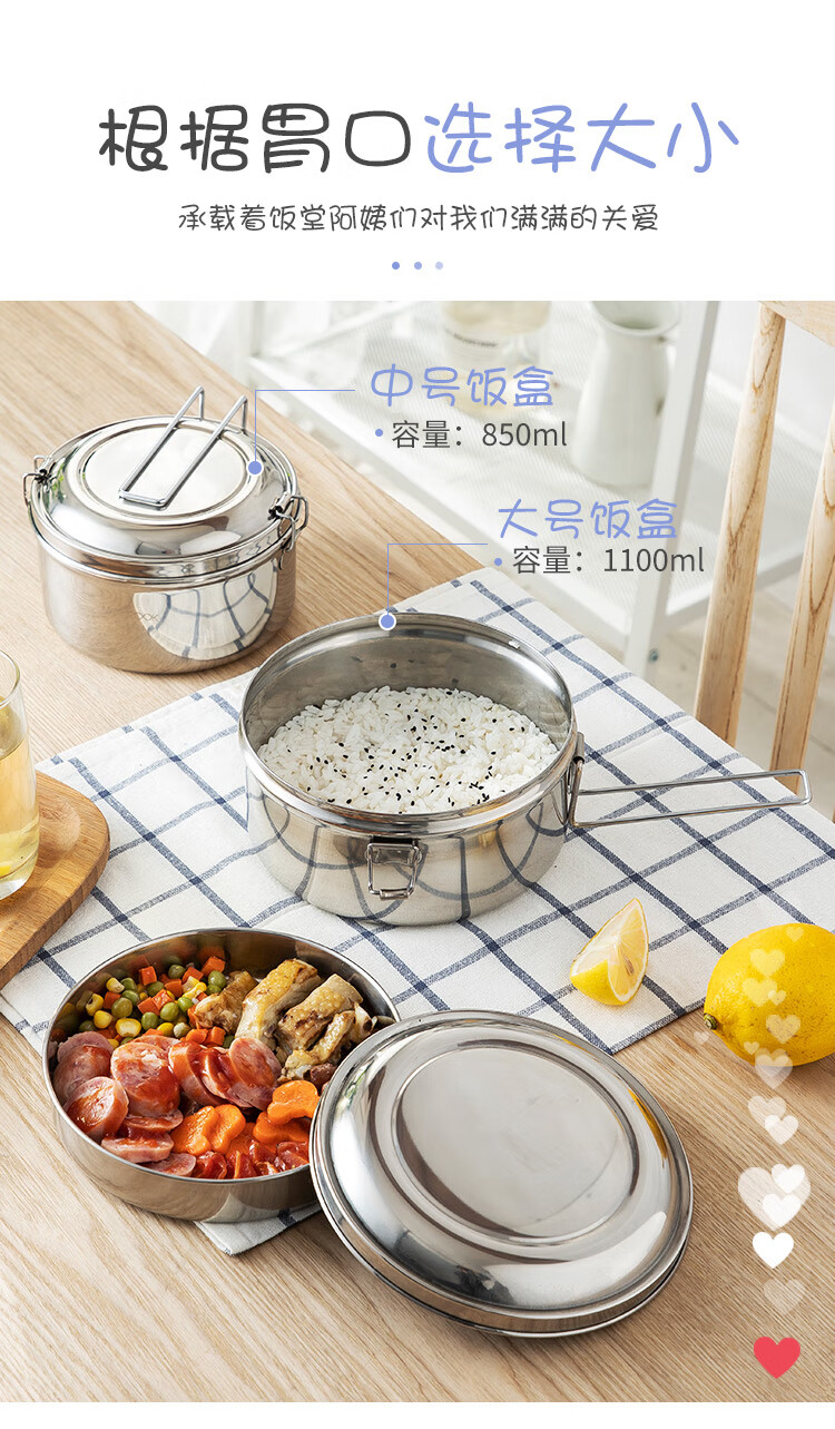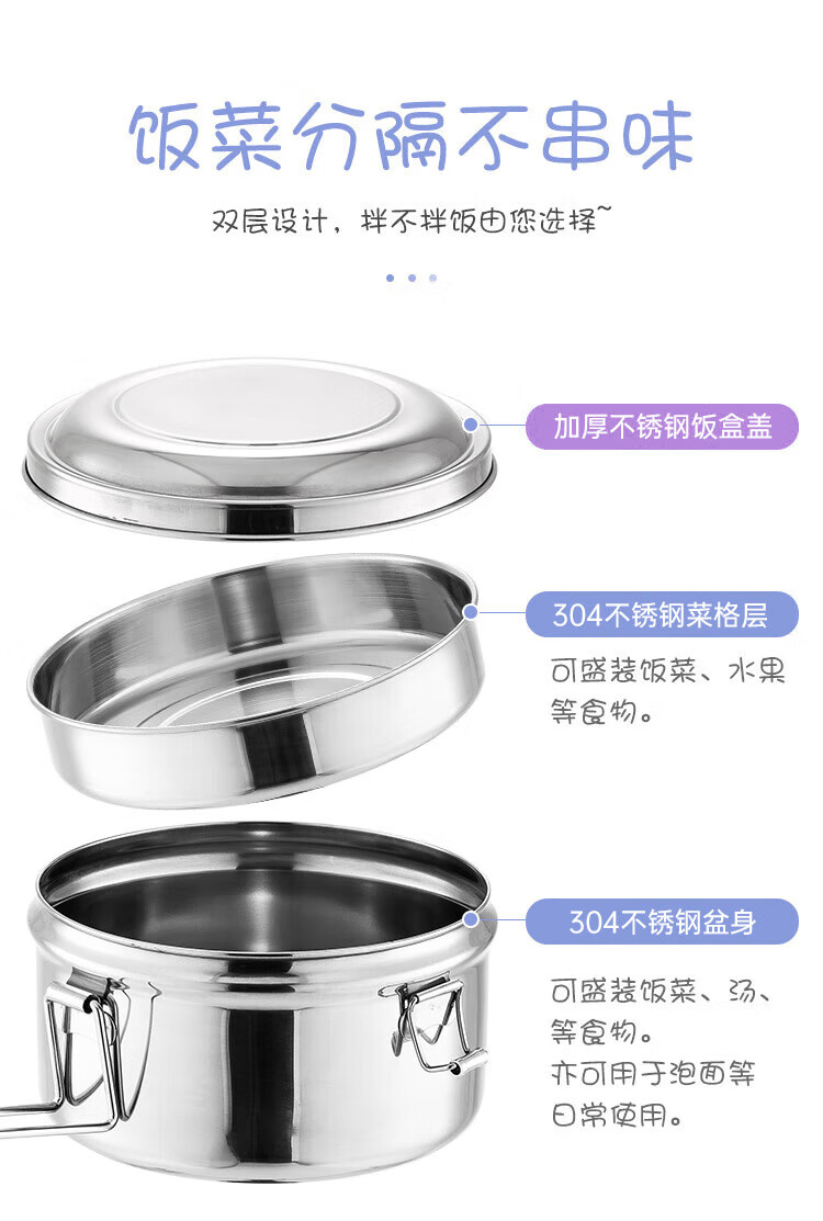 商品名称:美厨304不锈钢双层饭盒15.5CM MCFT5336