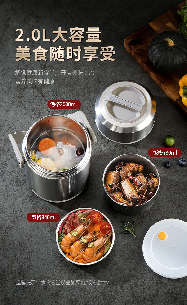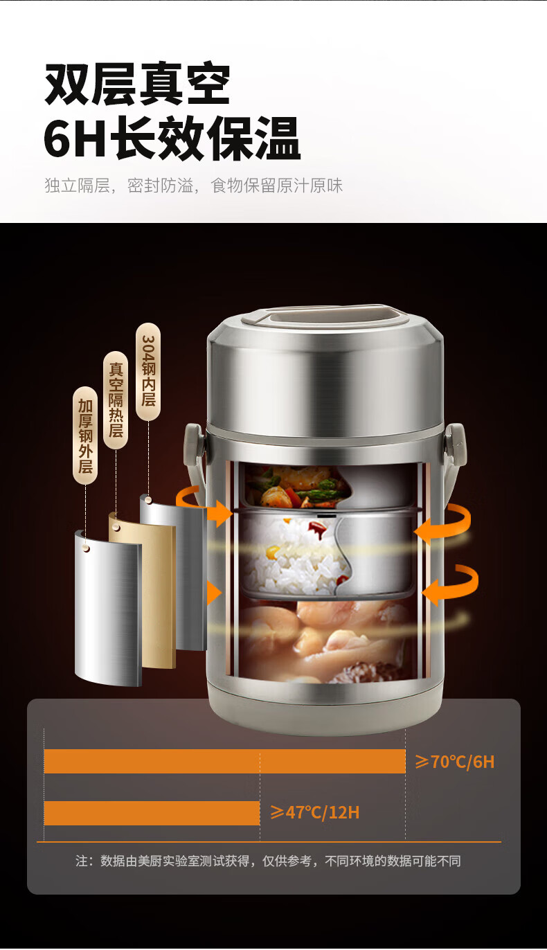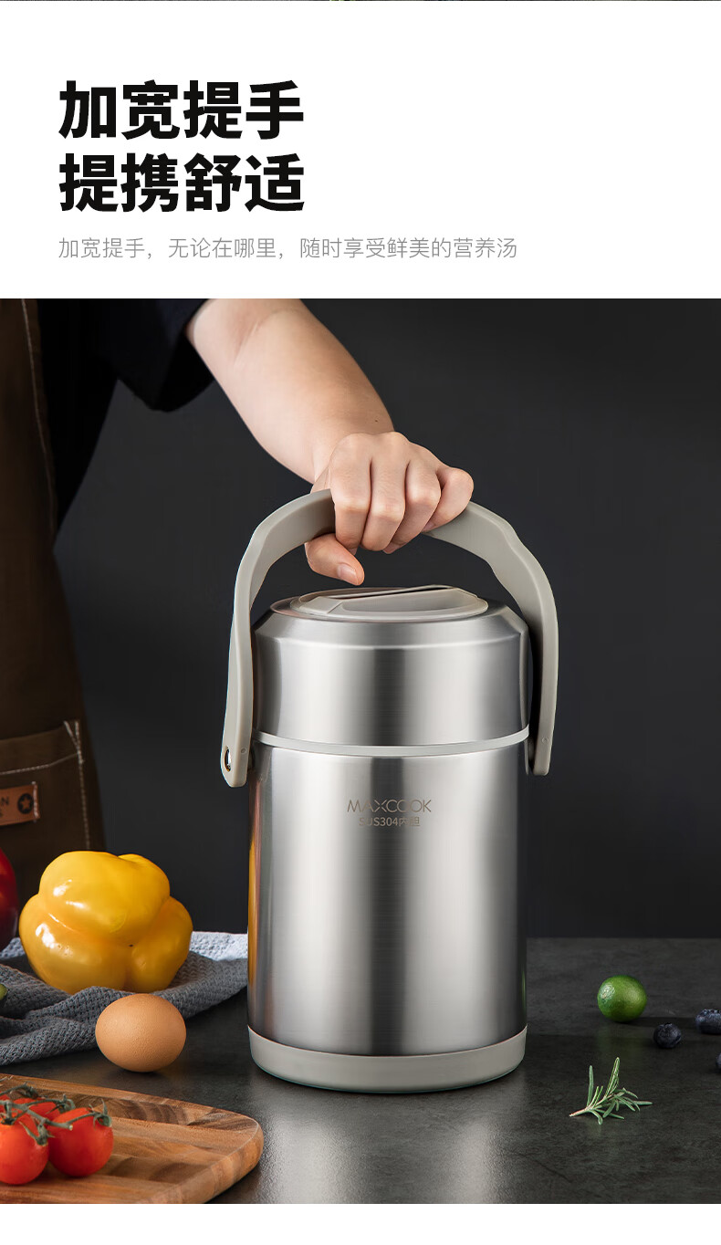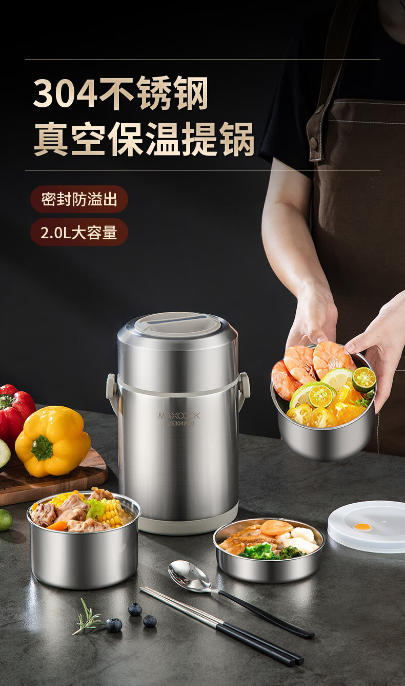 商品名称:美厨304不锈钢真空保温提锅2.0L MCTG9165