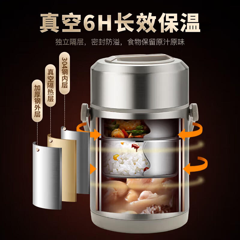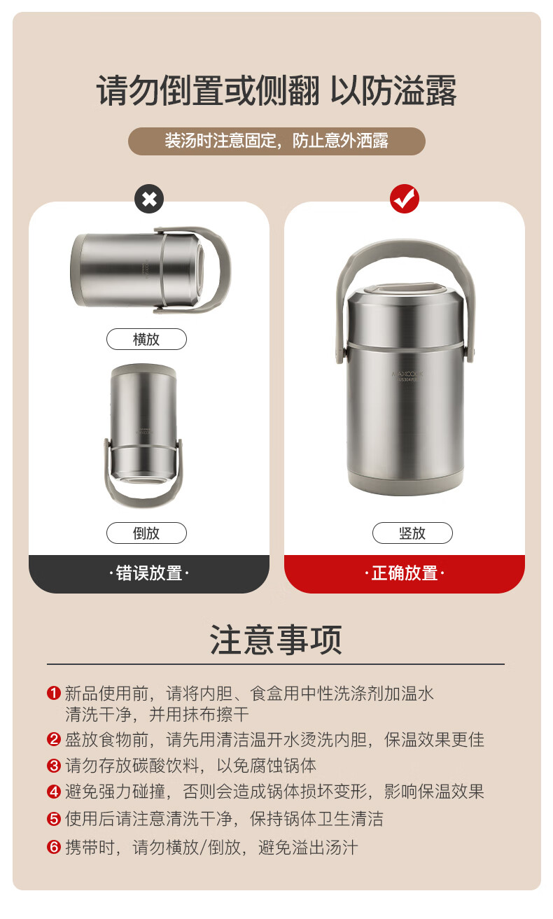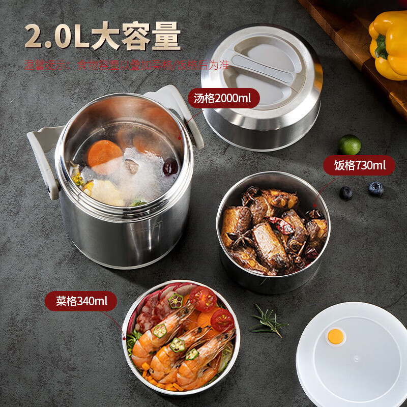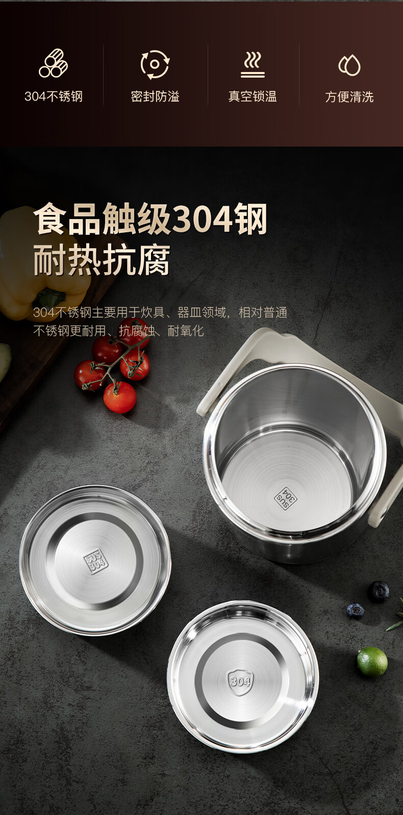 商品名称:美厨304不锈钢真空保温提锅2.0L MCTG9165
