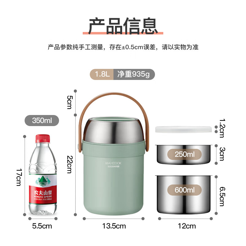 商品名称:美厨304真空保温提锅1.8L(薄荷绿)MCTG2721