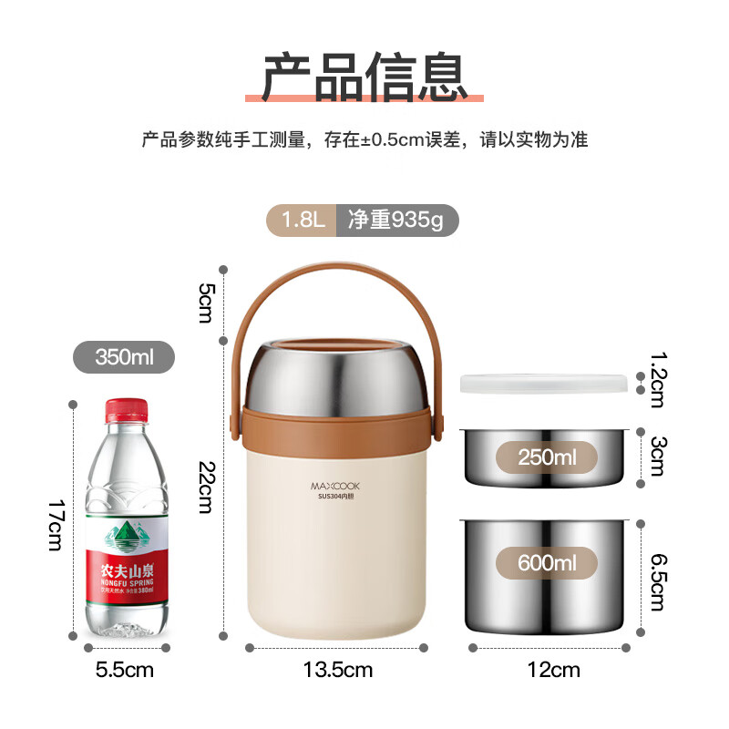 商品名称:美厨304真空保温提锅1.8L(莲子白)MCTG2691