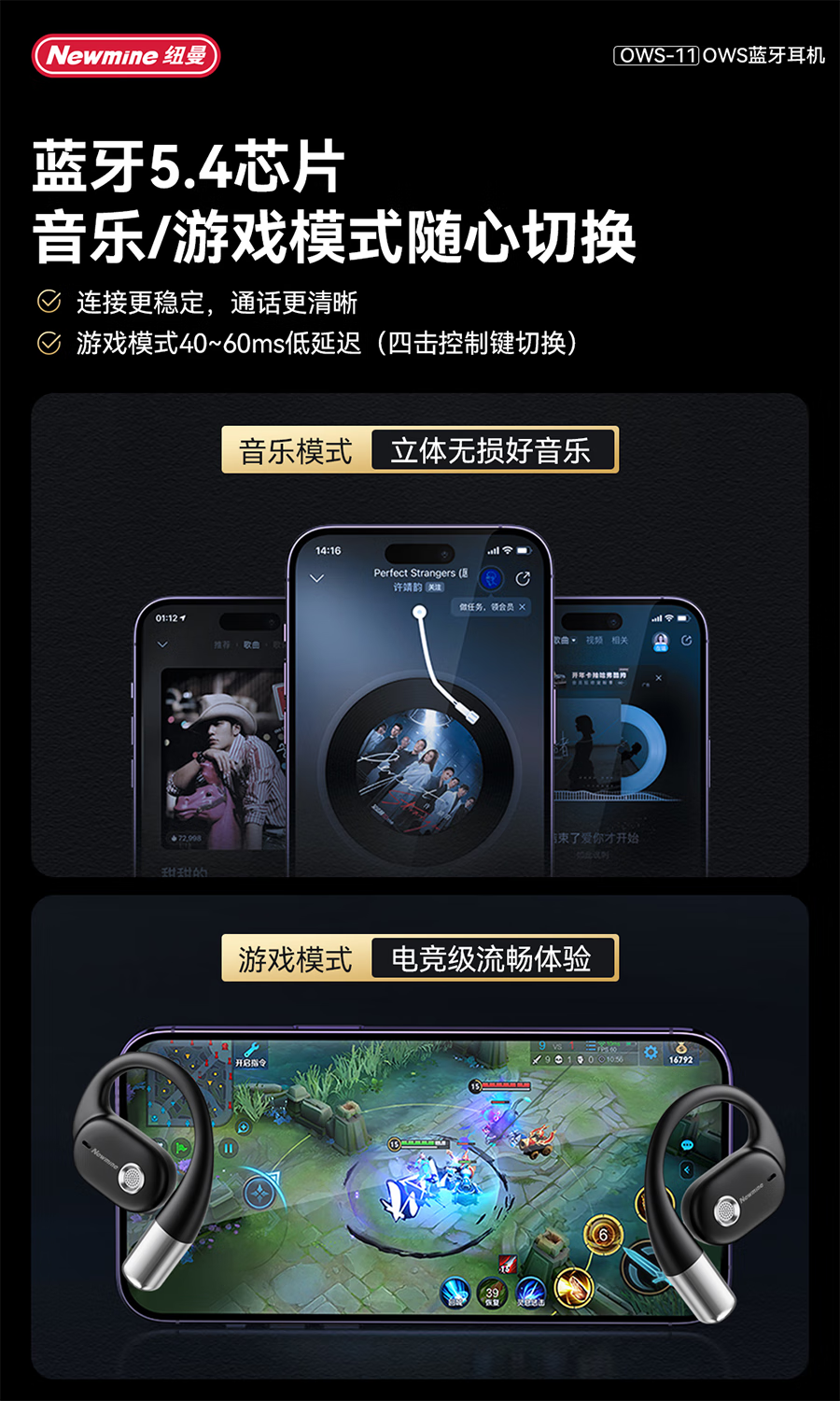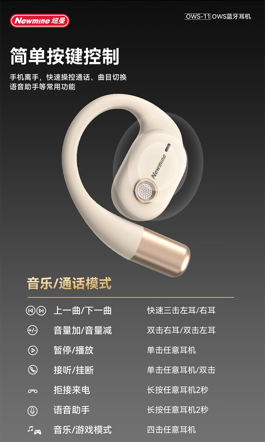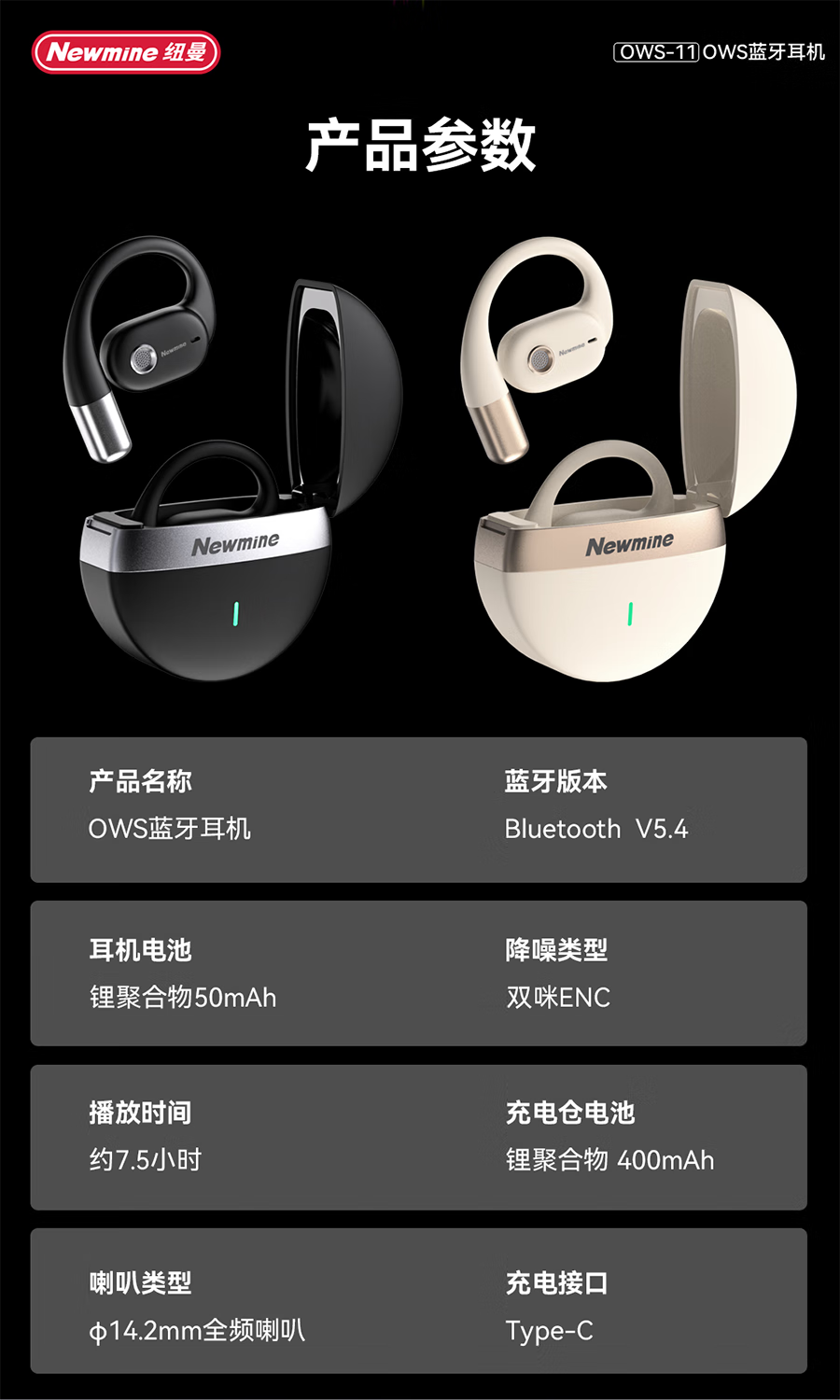 商品名称:纽曼 开放式OWS双耳蓝牙耳机 OWS-11