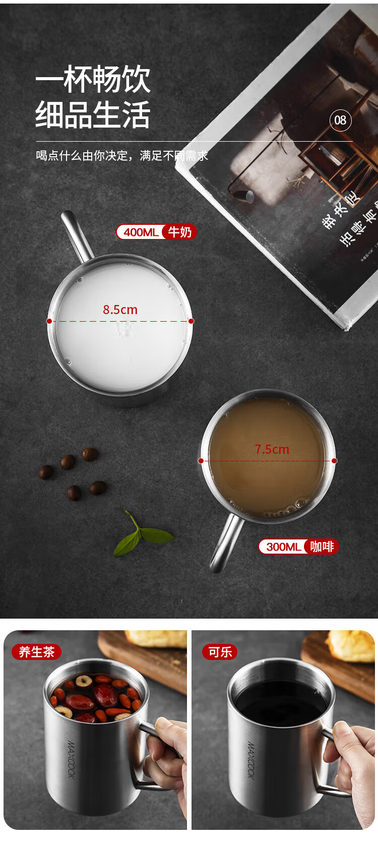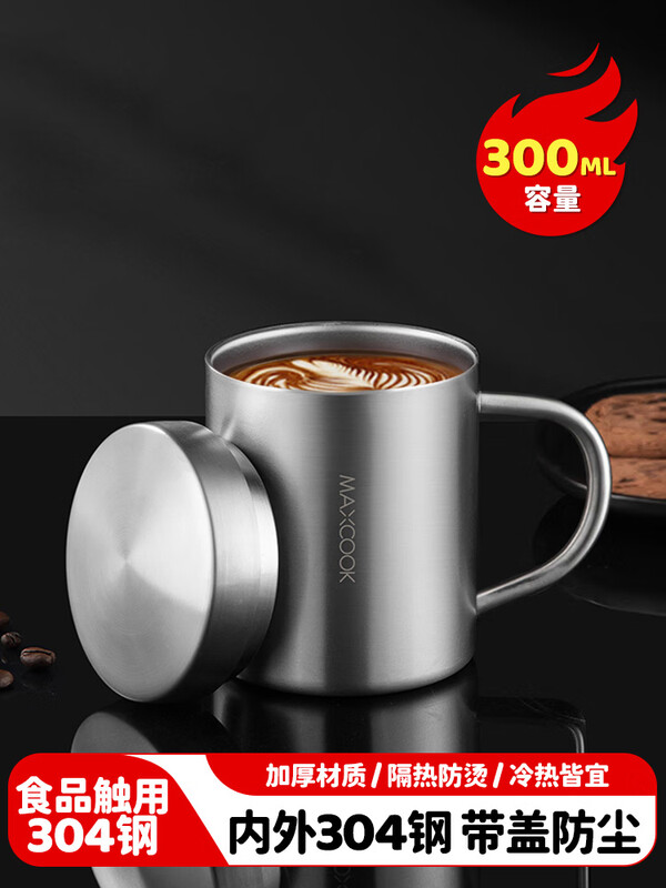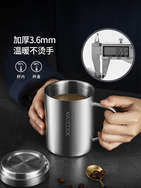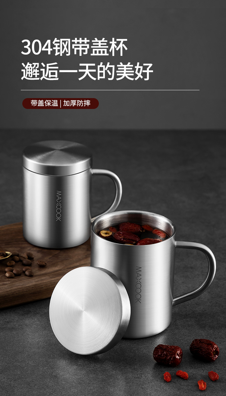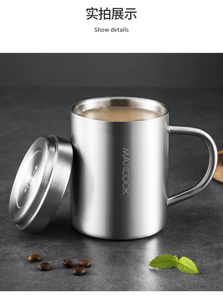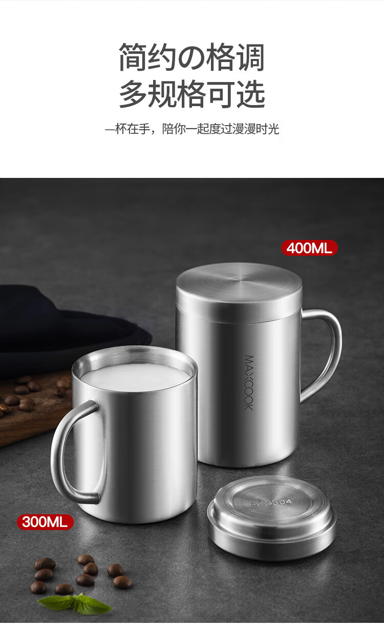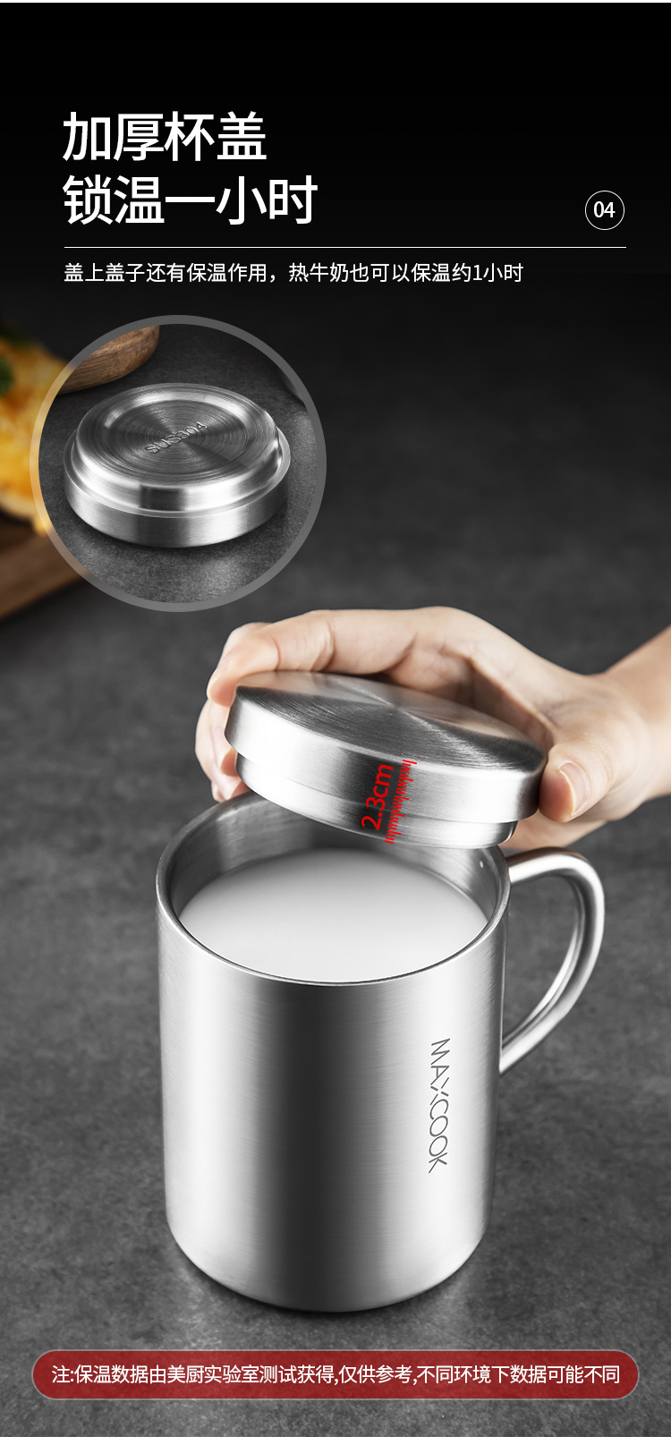 商品名称:美厨304不锈钢双层儿童杯7.8cm(带盖)MCB649