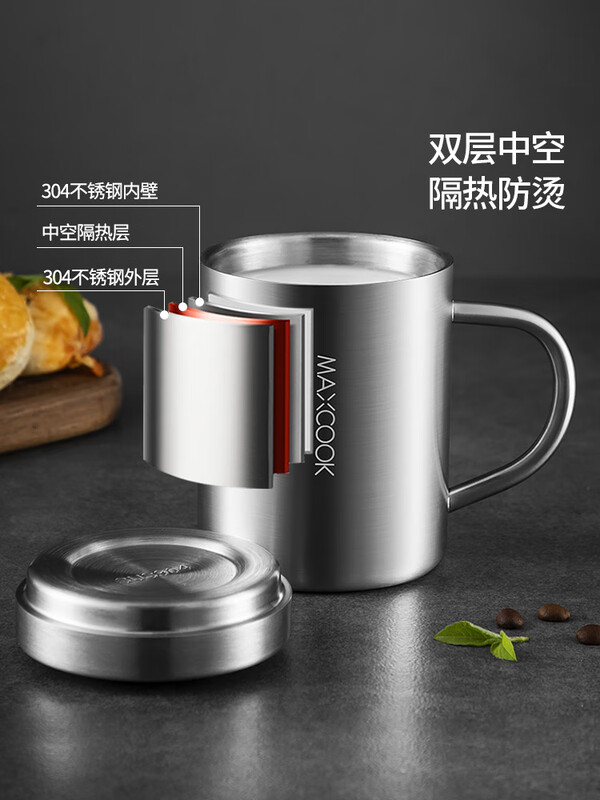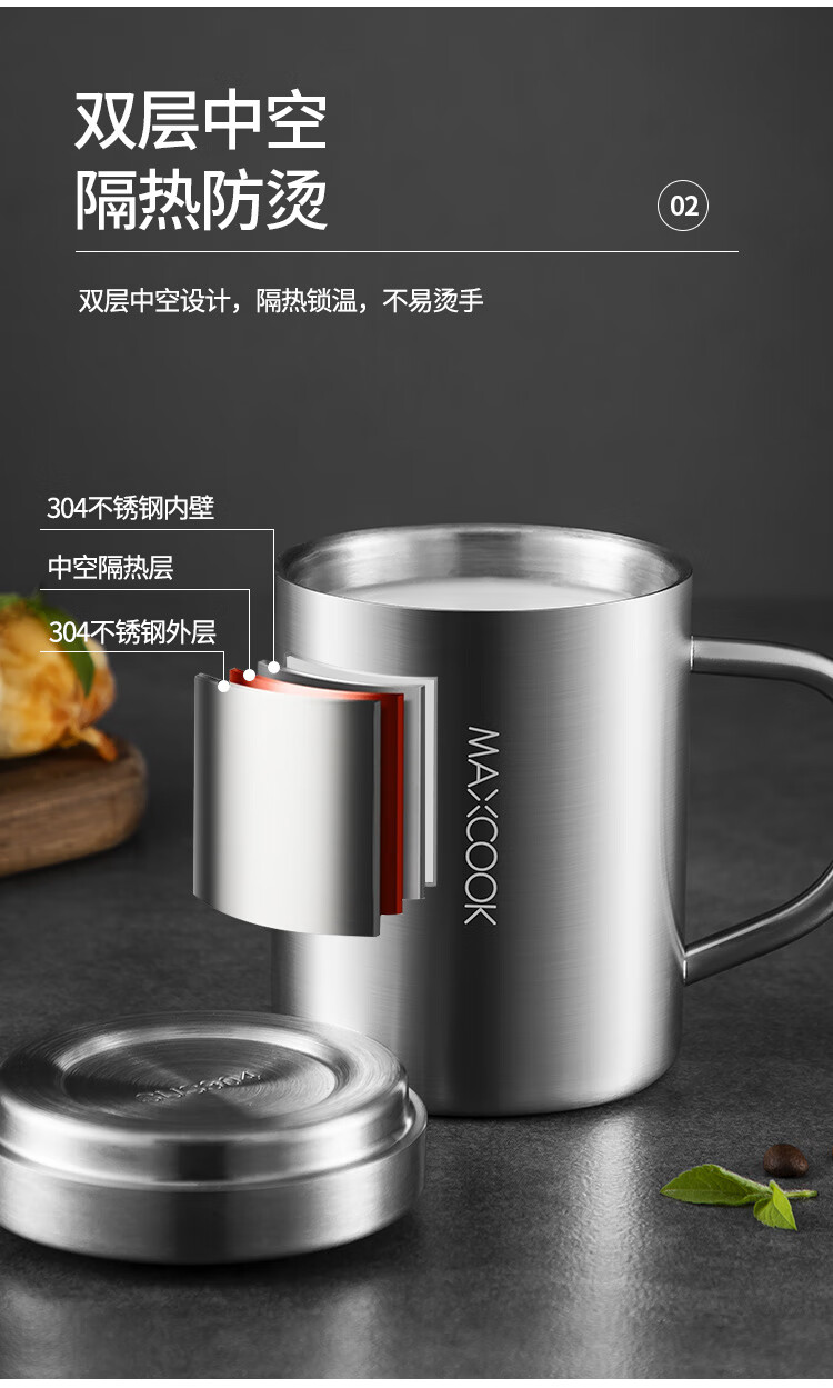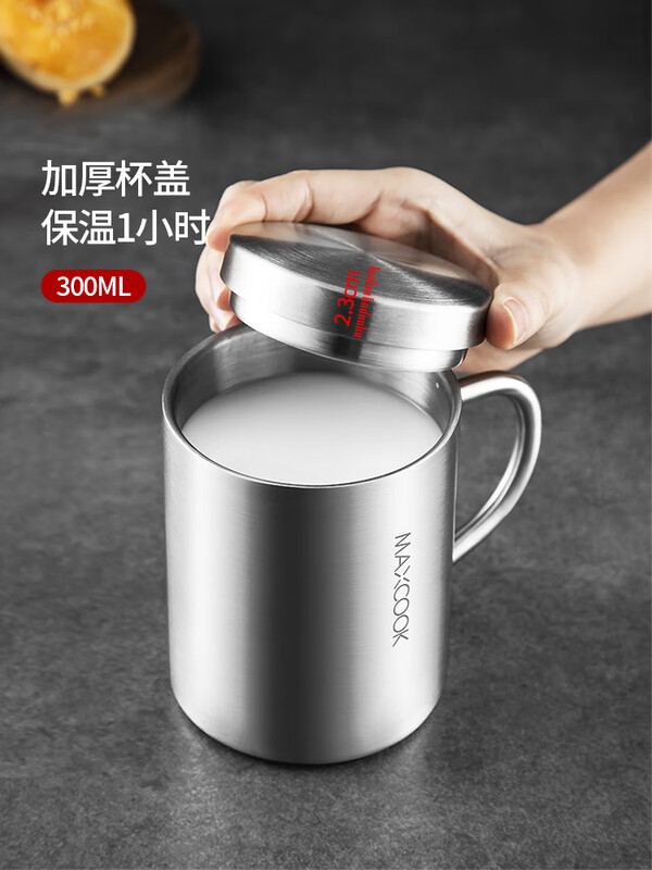美厨304不锈钢双层儿童杯7.8cm(带盖)MCB649