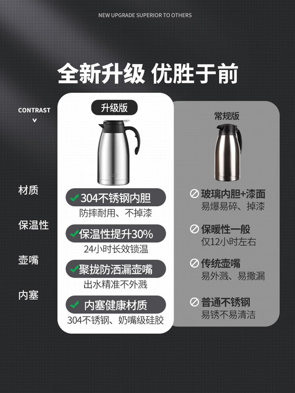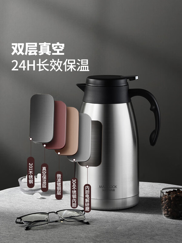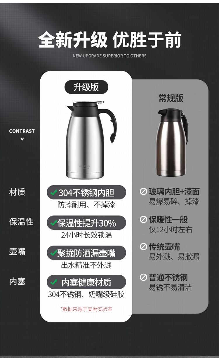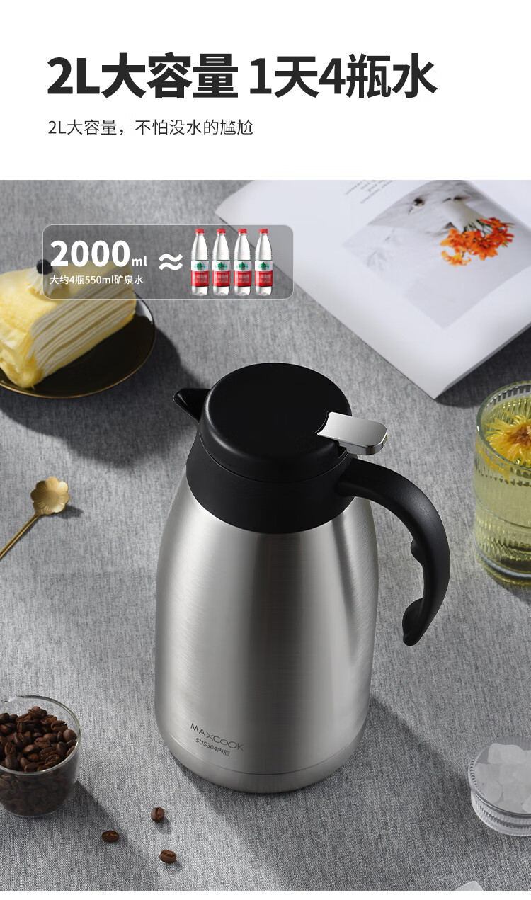 商品名称:美厨304不锈钢真空保温水壶2L MCH1060