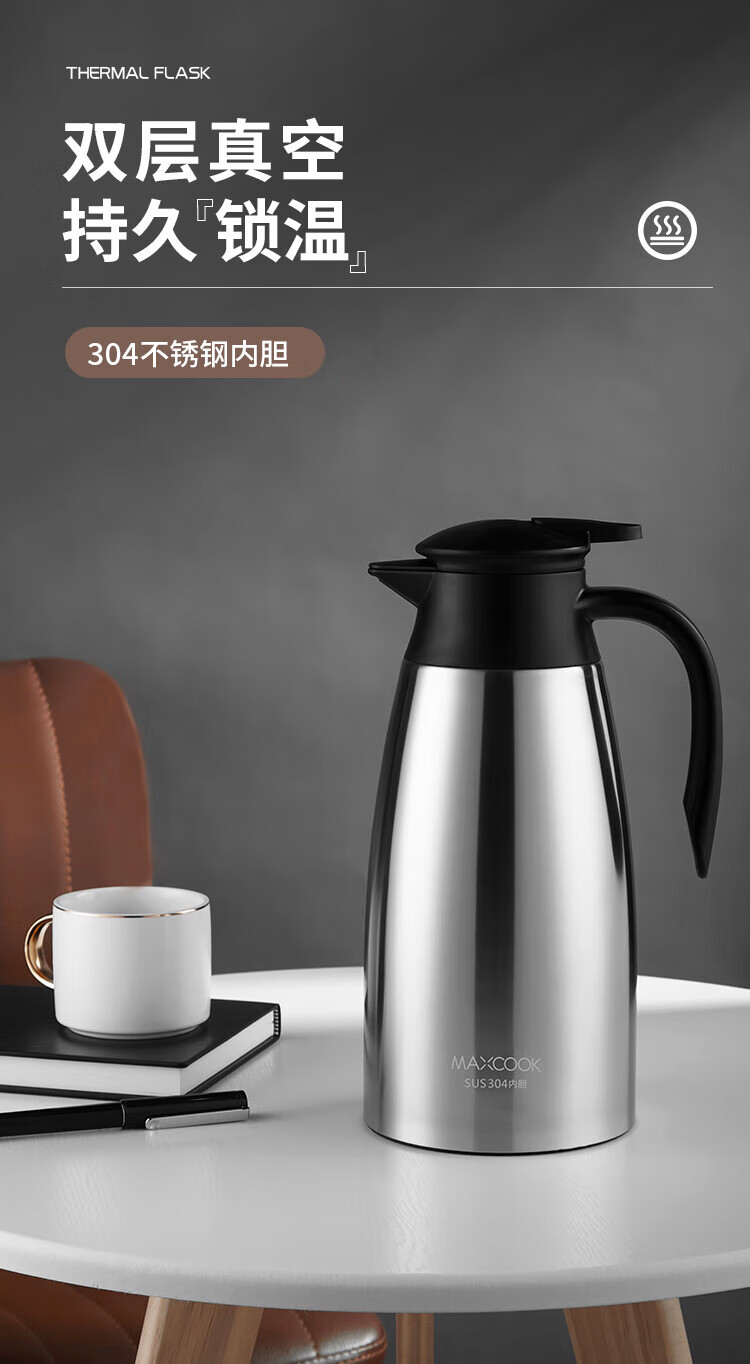 美厨304不锈钢真空保温水壶2.2L MCH9196