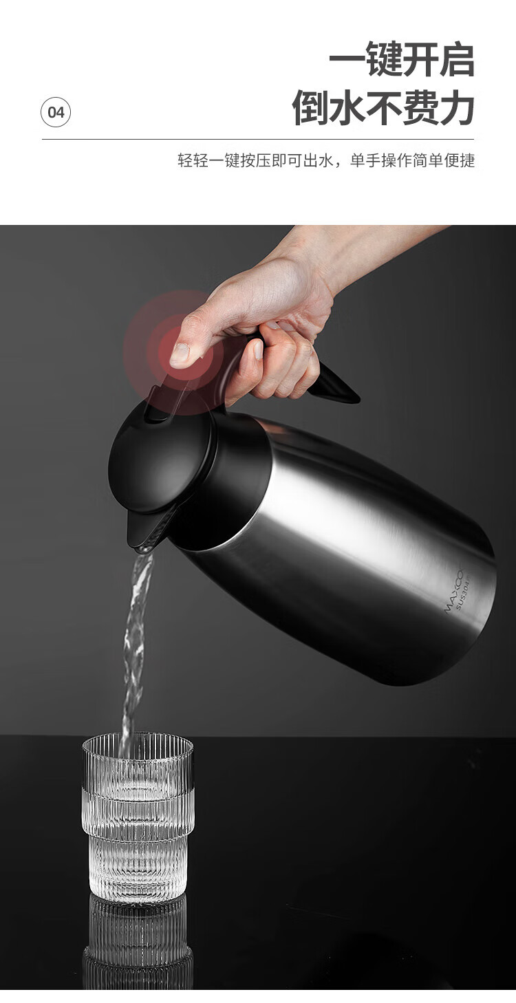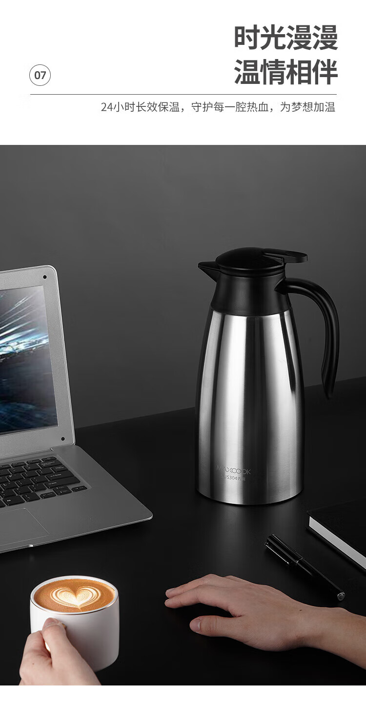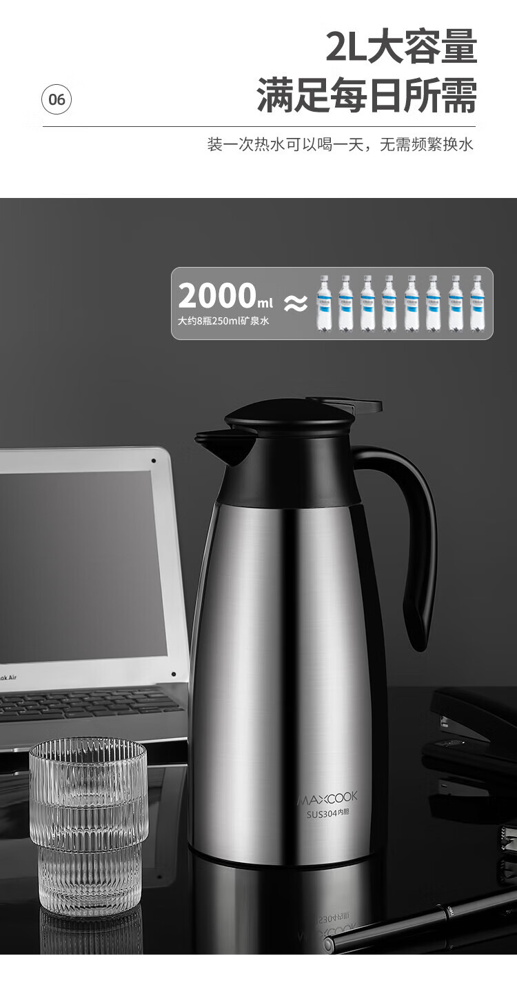 商品名称:美厨304不锈钢真空保温水壶2.2L MCH9196